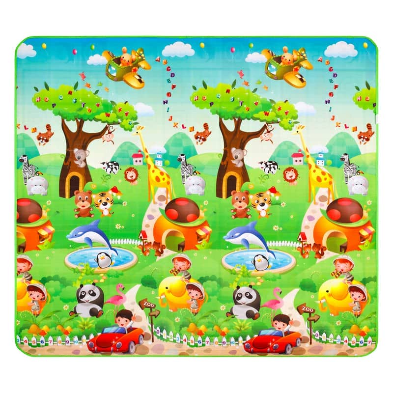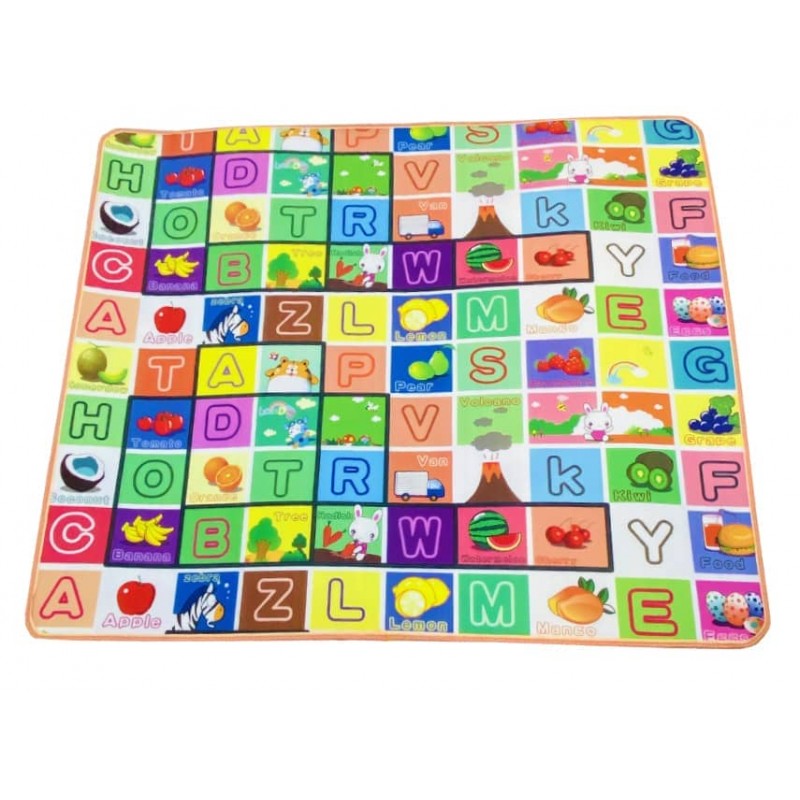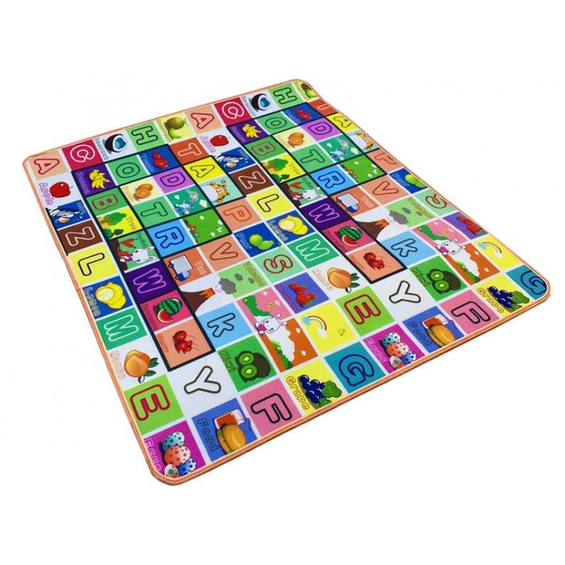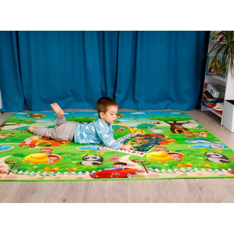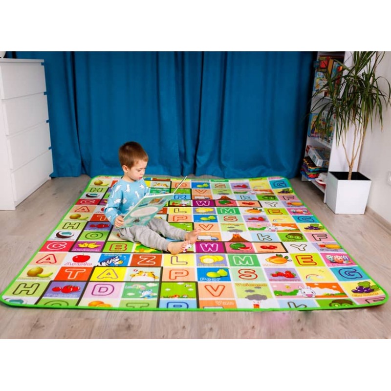 З двостороннім розвиваючим килимком ви з легкістю створите чудову ігрову зону для свого малюка. На кожній стороні килима зображені яскраві та життєрадісні тематичні малюнки: літери, забавні тварини, які допоможуть у навчанні, пізнанні світу та розвитку мови.
