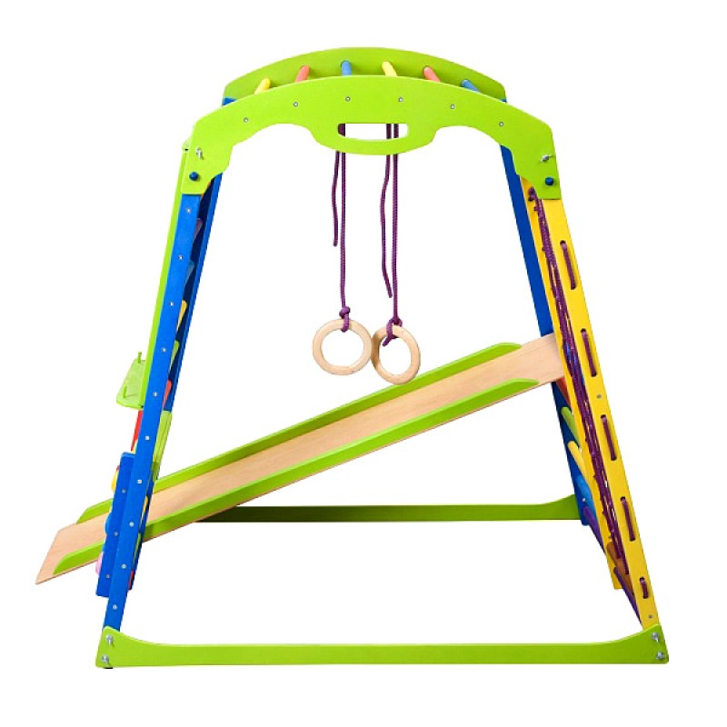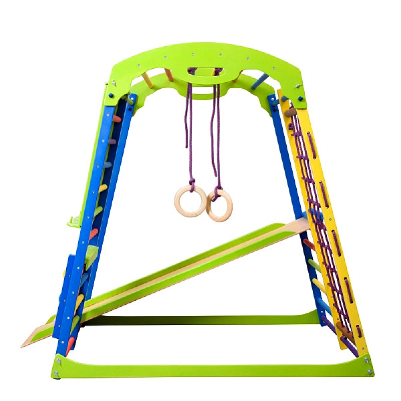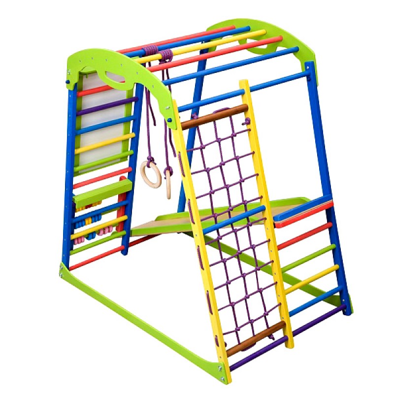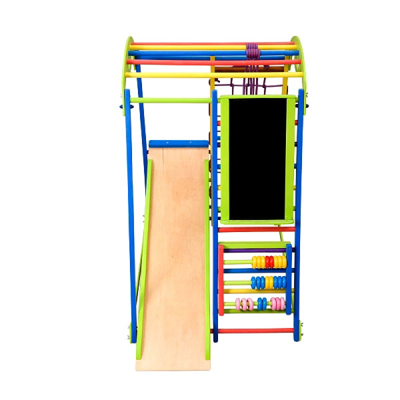 Дитячий спортивний комплекс для дому BabyWood Plus – кращий подарунок, який турботливі батьки можуть зробити для свого підростаючого малюка. Завдяки його спортивним елементам і оригінальним атрибутам, дитина буде не тільки міцніти фізично, а й зможе розвинути свої художні навички, логічне мислення і математичні здібності. До того ж, завдяки компактності, мобільності і нейтральної забарвленням, спортивний комплекс BabyWood Plus відмінно впишеться в квартиру будь-якого розміру і дизайну. Дитячий спортивний комплекс для дому BabyWood Plus призначений для ігор та занять дітей віком від 1 року до 5-7 років. Його конструкція продумана до дрібниць і виконано з урахуванням всіх фізіологічних особливостей розвитку дітей раннього та дошкільного віку. Виріб створено відповідно до високих сучасних європейських стандартів і вимогам ГОСТу. Дитячий комплекс пройшов необхідні перевірки якості і відповідає всім існуючим вимогам міжнародної сертифікації РЄ і TUV. Дитячий спортивний комплекс виготовлений з якісних матеріалів: натурального бука, вирощеного в екологічно чистих районах і ретельно обробленого і висушеного. Всі деталі спортивного комплексу ретельно відшліфовані і покриті сертифікованим тонованим лаком, який надає виробу оригінальний насичений горіховий відтінок і захищає його від руйнування і вологи.Дитячий спортивний комплекс для дому BabyWood Plus – це вдосконалена і поліпшена модифікація спортивного комплексу BabyWood. Як і його попередник, він укомплектований універсальними спортивними атрибутами для фізичного розвитку дитини: шведська стінка; гладіаторські сітка; рукоход; дитяча гірка; кільця. А для інтелектуального і художнього розвитку дитини, BabyWood Plus доповнений оригінальними розвиваючими елементами: яскравими рахунками; двостороннім мольбертом з білої і чорної основою для малювання і крейдою, і маркерами. Всі елементи цього спортивного куточка функціональні. Навіть округлі ручки нагорі вироби можна використовувати і для перенесення, і для кріплення додаткових спортивних елементів.