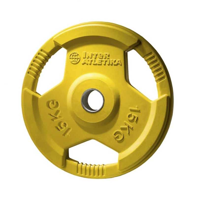 Диск прогумований InterAtletika кольоровий з ручками 15 кг, код: LCAH047-M