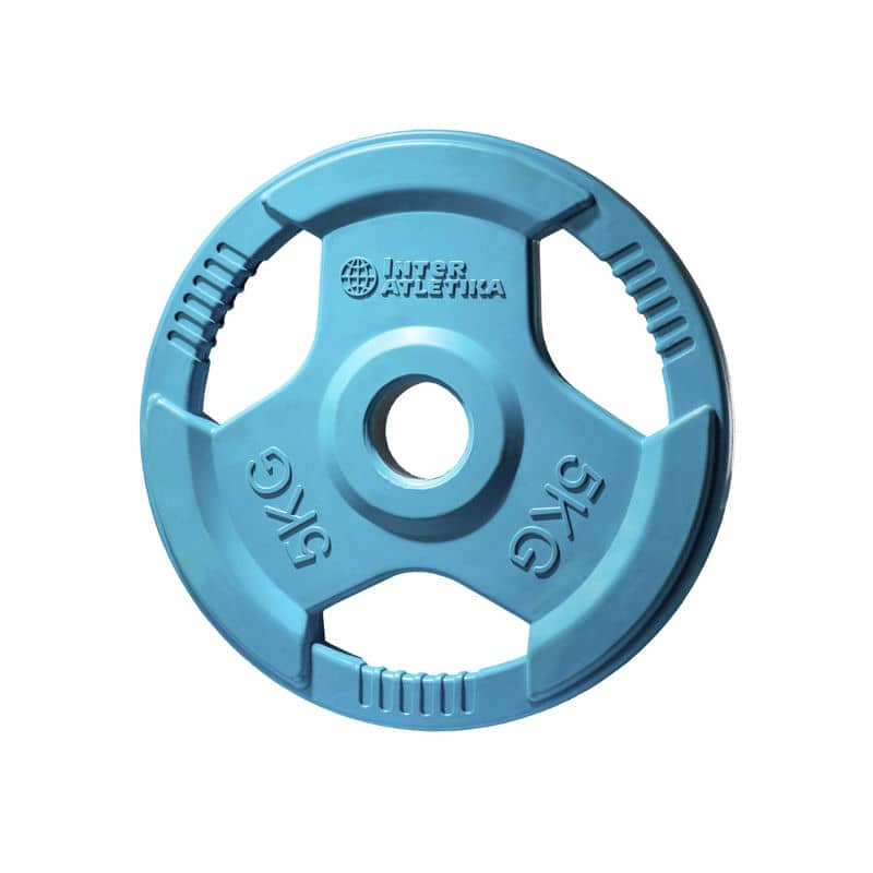 Диск прогумований InterAtletika кольоровий з ручками 5 кг, код: LCAH045-M