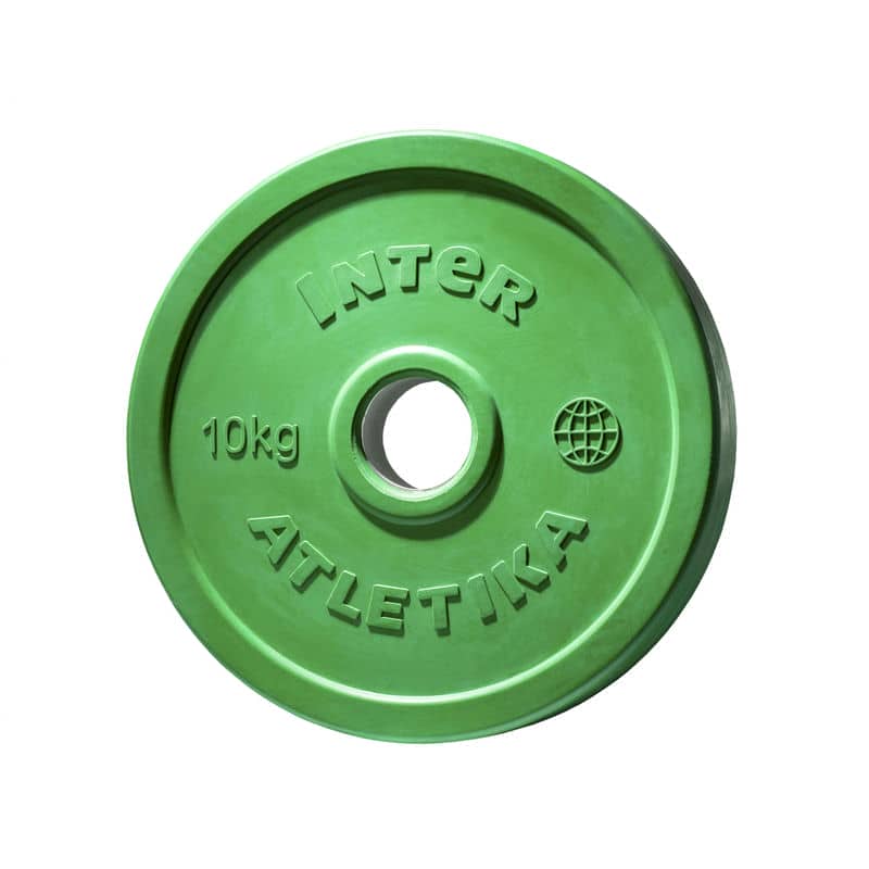 Диск прогумований InterAtletika зелений 10 кг, код: LCA032-M