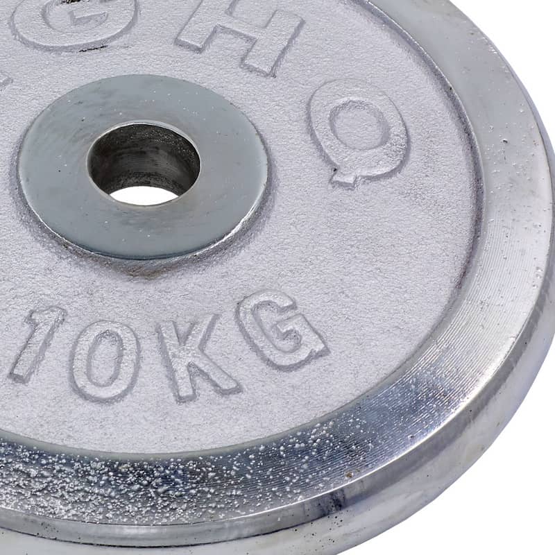 Виготовлені з високоякісного металу промислового класу і піддані хромуванню, Диски (диски) характеризуються точним вагою і стійкістю до механічних пошкоджень і іржавіння. Потовщена центральна втулка дозволяє швидко надіти Диски на гриф, а завдяки потовщений обода, службовцю своєрідною суцільний руків'ям, їх простіше утримувати в руках при перенесенні або завантаженні на штангу. Диски підходять до будь-яким стандартним грифам відповідного діаметру.