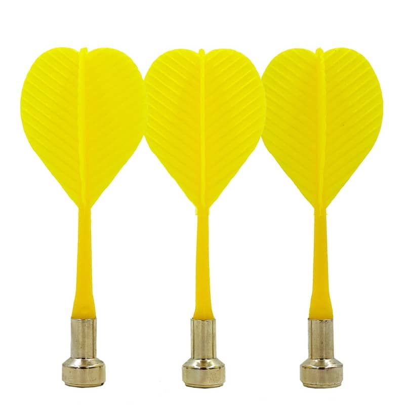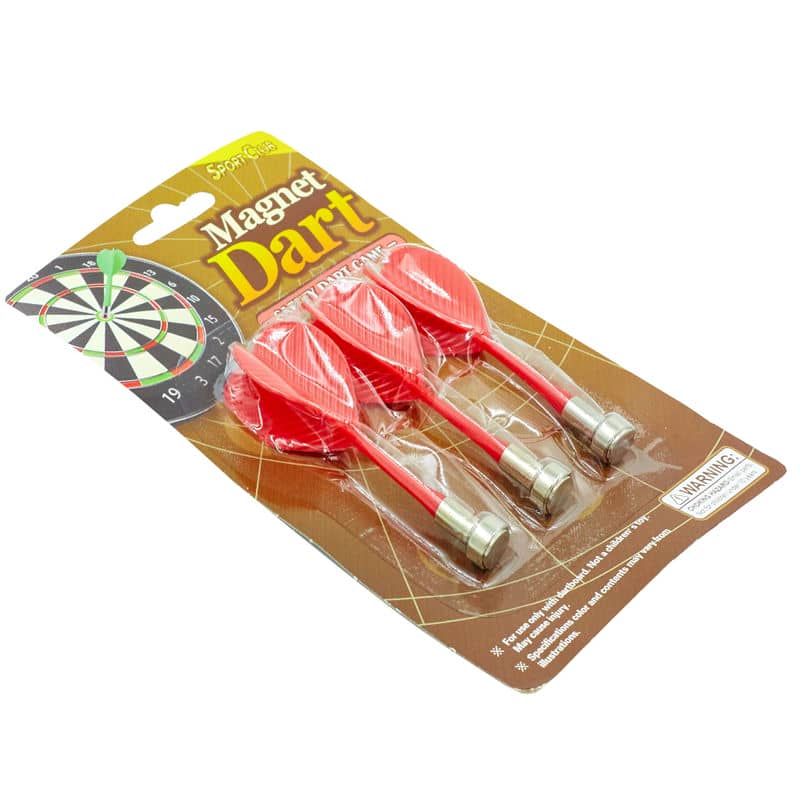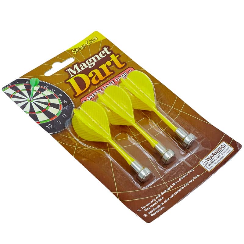У комплект входять 3 дротики, готові до гри. Основою кожного є пластиковий стрижень. З одного боку стрижня надійно закріплений потужний циліндричний магніт, який відповідає за бездоганне прилипання до мішені. З іншого боку знаходиться яскраве пластикове оперення, яке не лише додає естетичну привабливість, а й стабілізує політ. Для досягнення найкращих результатів рекомендується кидати дротики з відстані 1,5 метра від мішені.