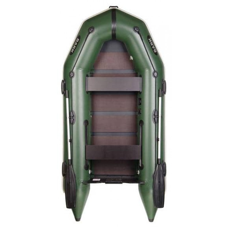 З мотором до 5к.с. показує відмінну керованість та хорошу швидкість порівняно з іншими човнами порівнянного розміру. Пересувне заднє сидіння полегшує оптимальний розподіл ваги, керування мотором. 6 слонів дають необхідну жорсткість днища на ходу та високу комфортабельність. Як усі моторні човни BARK, ця модель оснащена привальним брусом із бризковідбійником. Тому борти захищені від зіткнення та зайвого тертя (про опору причалу, очерет тощо), а пасажири та кокпіт – від надмірного забризкування. Захисні молдинги на днищі бережуть його від зайвого тертя під час витягування на берег, перевезення на причепі. На цей човен можна встановити тент або човновий намет. Цей човен дуже зручний для риболовлі будь-яким способом, для водних прогулянок. Зручна і для полювання. Цей човен підлягає держреєстрації.