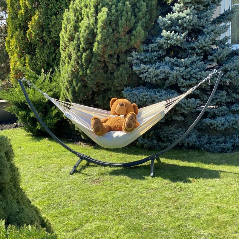 Ми є виробником цих гамаків і рам для них. З цього тільки у нас Ви зможете підібрати металеву раму під гамак, яка доступна в 6 кольорах! Для каркаса використовується добірний профіль товщиною 2 мм, який гарантує безпечне використання.