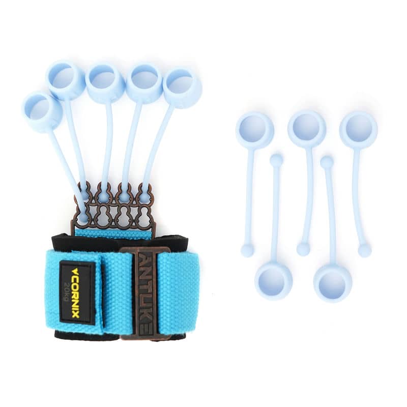 Еспандер для пальців від Cornix має продуману конструкцію. Універсальна манжета з м'якою неопреновою підкладкою регулюється під потрібний об'єм та фіксується на зап'ясті застібкою-липучкою. До неї під'єднуються силіконові трейнери з насадками для пальців. В залежності від їх положення змінюється навантаження. Регулярні тренування з цим інструментом допоможуть розслабити та зміцнити пальці, зробити їх більш гнучкими та готовими до виконання різноманітних завдань.