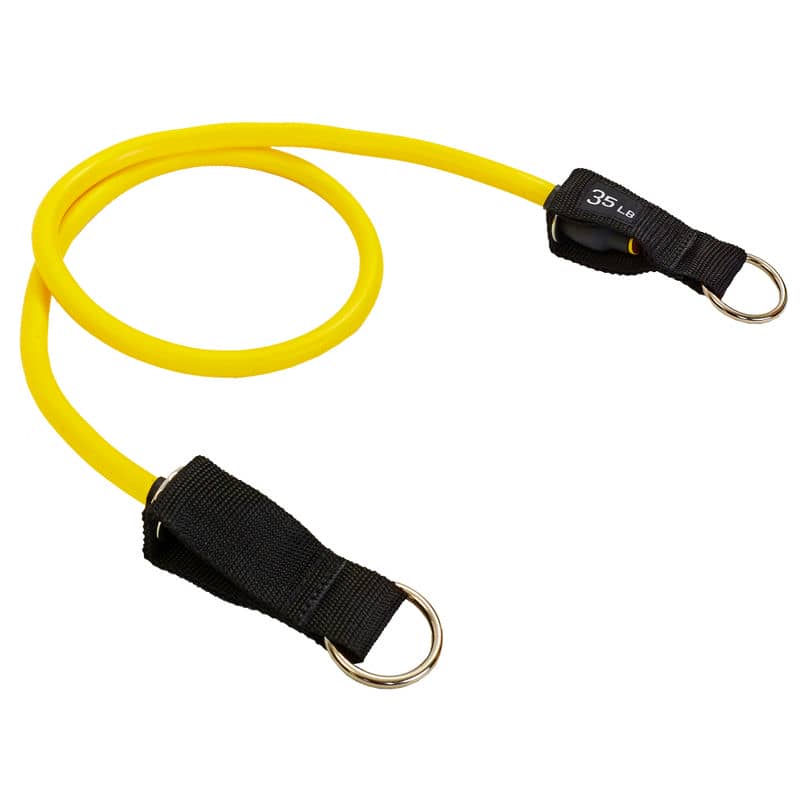 Його зручність полягає в універсальній конструкції: по кінцях міцного латексного джгута закріплені поліестерові петлі з металевими кільцями. Завдяки цьому ви легко можете пристебнути його до сумісних ручок, лямок або платформ, змінюючи тип вправ і збільшуючи варіативність рухів.