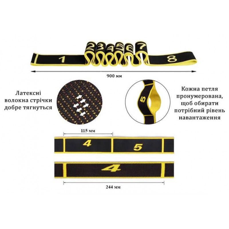 Еспандер стрічка з петлями для тренувань EasyFit, чорний-жовтий, код: EF-1683-Y-EF