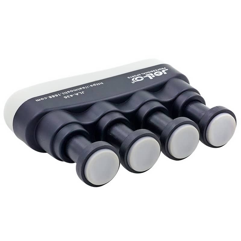 «JELLO GRIP-PIANO» – це портативний тренажер із міцного пластику, що представляє собою рукоять з вбудованими в неї незалежними один від одного клавішами, кожна з яких забезпечена потужною сталевою пружиною. При цьому кожна клавіша має регулятор навантаження. Така конструкція дозволяє опрацьовувати як весь пензель, так і кожен палець окремо, а змінюючи спосіб хвата і рівень опору клавіш, можна значно розширити список вправ і варіювати їх інтенсивність. Накладка, що прикриває ручки регулювання, має ергономічну форму та зручно лягає у долоню, забезпечуючи комфорт під час занять.
