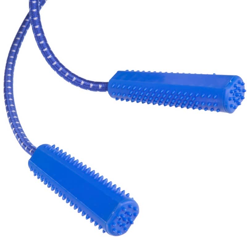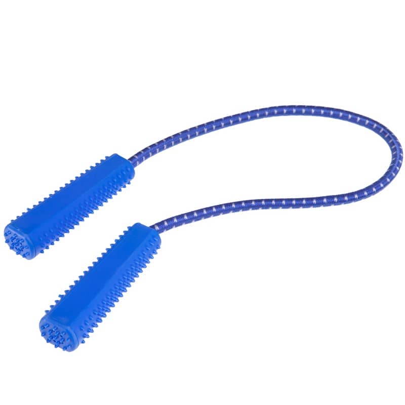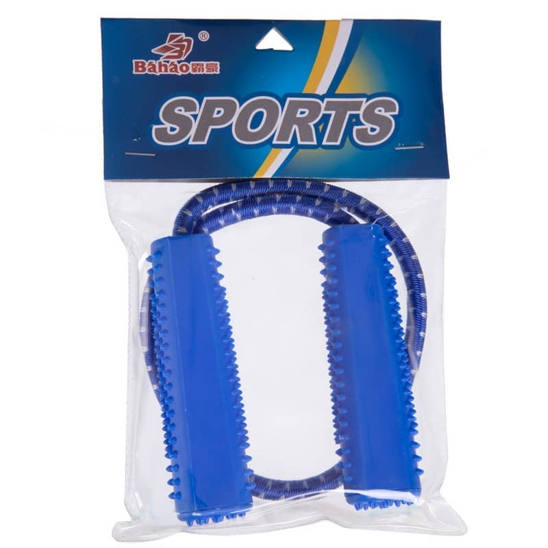 Еластичний джгут довжиною 68 см і діаметром 7 мм забезпечує плавний опір, а захищена палітурна оболонка зберігає його цілісність навіть при активній експлуатації. Прямі рукояті покриті з усіх боків щільним рядом масажних шипів. Ці виступи не тільки покращують зчеплення, а й дозволяють використовувати ручки для самомасажу. Ви можете акуратно розминати ними м'язи рук, плечей та передпліччя, що допоможе швидше зняти напругу та спазми після навантажень.