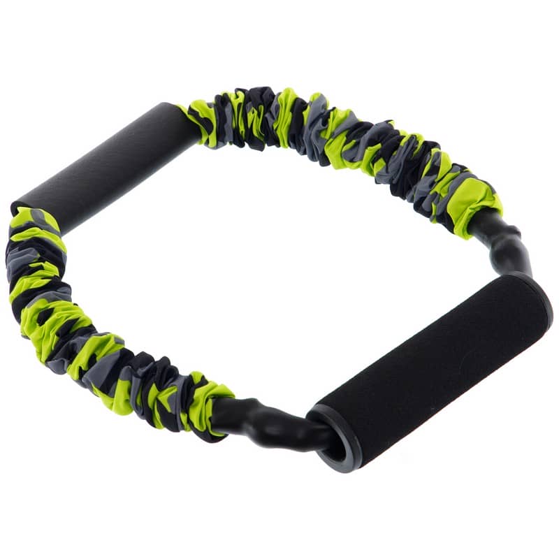 Трубчастий еспандер із ручками виготовлений із еластичного нейлону, який закритий за допомогою захисного матеріалу – термопластичної гуми. Термопластична гума витримує тертя, удари, вплив атмосферних явищ та температур. Тому еспандер прослужить довгий час завдяки такому захисту.
