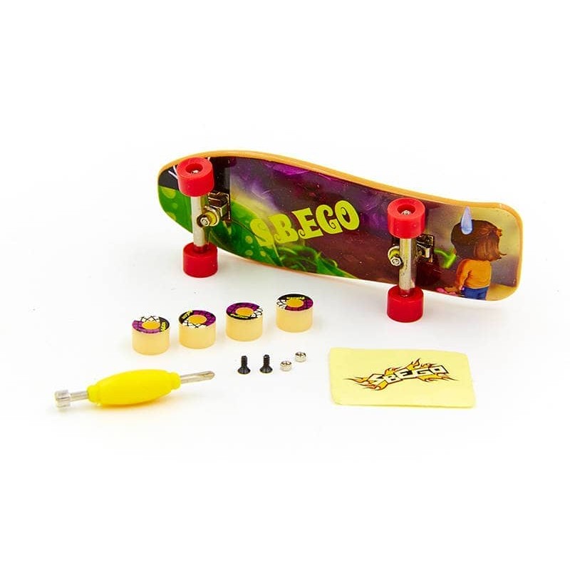 Фінгерборд - це мініатюрний скейтборд, призначений для катання на пальцях. На ньому можна виконувати ті ж трюки, що і на повнорозмірнiй дошці - з пандусами і перешкодами, з тією лише різницею, що в якості скейтера виступає рука користувача. Крім того що це захоплююче і веселе заняття, воно розвиває спритність пальців і психомоторику. При цьому «катання» на фінгерборді - це захоплення, яке доступне всім віковим категоріям, ну а скейтерський парк можна організувати навіть у себе на столі. Фінгерборд являє собою зменшену копію справжнього скейтборду і, відповідно, його конструкція практично не відрізняється від оригінальної. Він складається з деки, встановленої на дві підвіски, до яких в свою чергу приєднані по два колеса. Щоб можна було маніпулювати фінгербордом і таким чином виконувати різні трюки, поверхня деки покрита шорстким матеріалом, по якому не ковзають пальці. У наборі також йде своєрідний ремкомплект - запасні колеса, викрутка і гайковий ключ, а також запасні гайки, гвинти.
