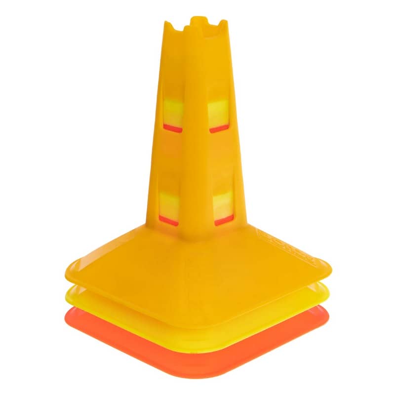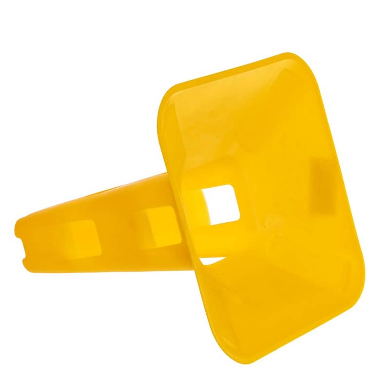 Квадратна тренувальна фішка SP-Sport C-7158 має висоту 23 см та отвори на кожній із граней. Це дає змогу використовувати її для розмітки тренувального простору, створення бар'єрів для бігу та виконання різних загальнорозвивальних вправ. У верхній частині конструкції присутній паз, у який можна вставити перекладину. Широка основа конуса забезпечує його стійкість на різних покриттях, тому використовувати його можна як на вулиці, так і в приміщенні. Конус виготовлений із міцного пластику, стійкого до впливу вологи та сонячного світла.
