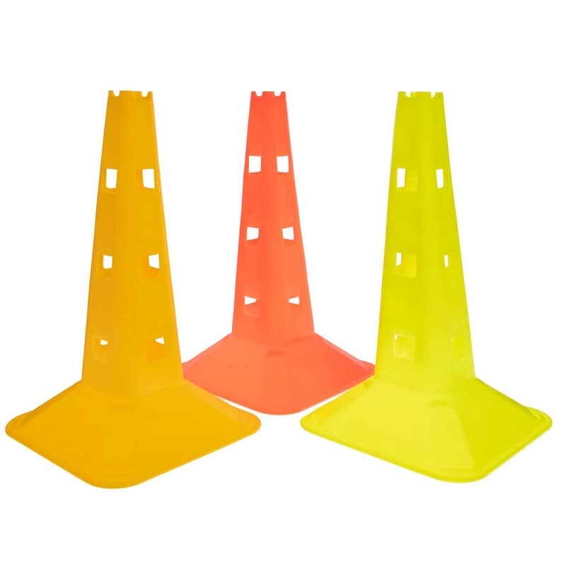 Для створення тимчасової розмітки поля зручно використовувати тренувальні фішки у формі конуса. Вони не потребують спеціального кріплення і можуть переміщатися з місця на місце за лічені хвилини. Це особливо актуальний інвентар для ігрових видів спорту та легкоатлетичних дисциплін, де такі фішки застосовуються для створення бар'єрів і розмітки трас.