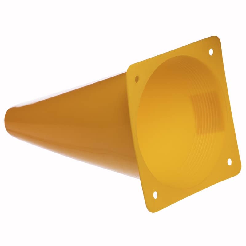 Основа конуса має прямокутну форму з чотирма отворами, які дають змогу закріпити його на покритті, якщо це необхідно. Однак завдяки своїй формі конус має відмінну стійкість на будь-яких покриттях і може встановлюватися без додаткового кріплення. Контрастне забарвлення допомагає спортсмену краще орієнтуватися на місцевості та добре бачити розмітку.