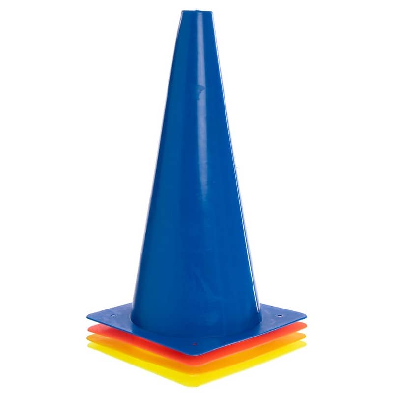 Тренувальний конус - це незамінний інвентар для представників різних ігрових видів спорту та легкої атлетики. Коли мова заходить про розмітку траси, футбольного поля або майданчика, зазвичай використовують саме конуси. Цю модель конуса виготовлено з міцного пластику та пофарбовано фарбою контрастного кольору. Контрастна фарба дає змогу конструкції залишатися видимою на тлі будь-якого покриття, незалежно від його кольору. У верхній частині конуса розташовується отвір, що дає змогу використовувати його спільно з прапорцями. Конус має прямокутну основу з отворами, через які за необхідності можна зафіксувати його на ґрунтовому або трав'яному покритті за допомогою кілочків.