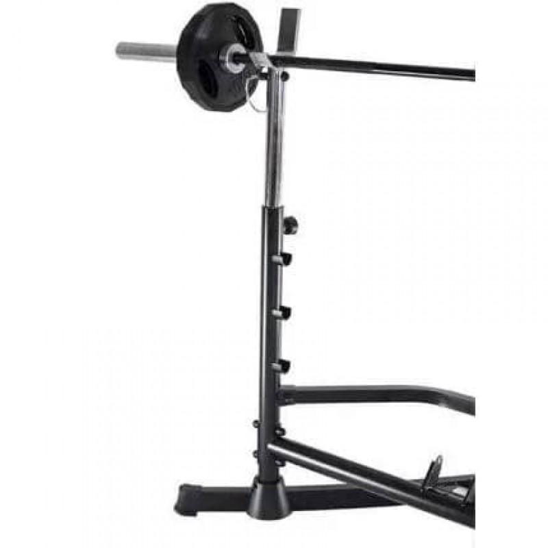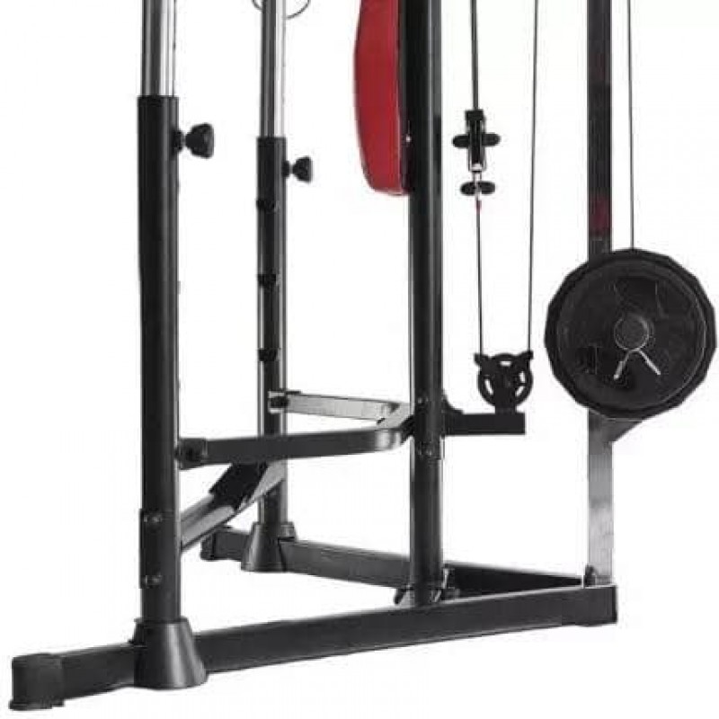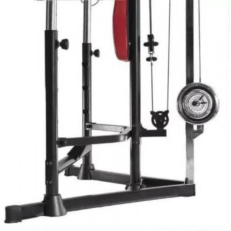 Виріб також має регульовану висоту штанги. Ще однією перевагою мультитренажерного залу HMS є можливість складати лаву , завдяки чому обладнання займає менше місця.