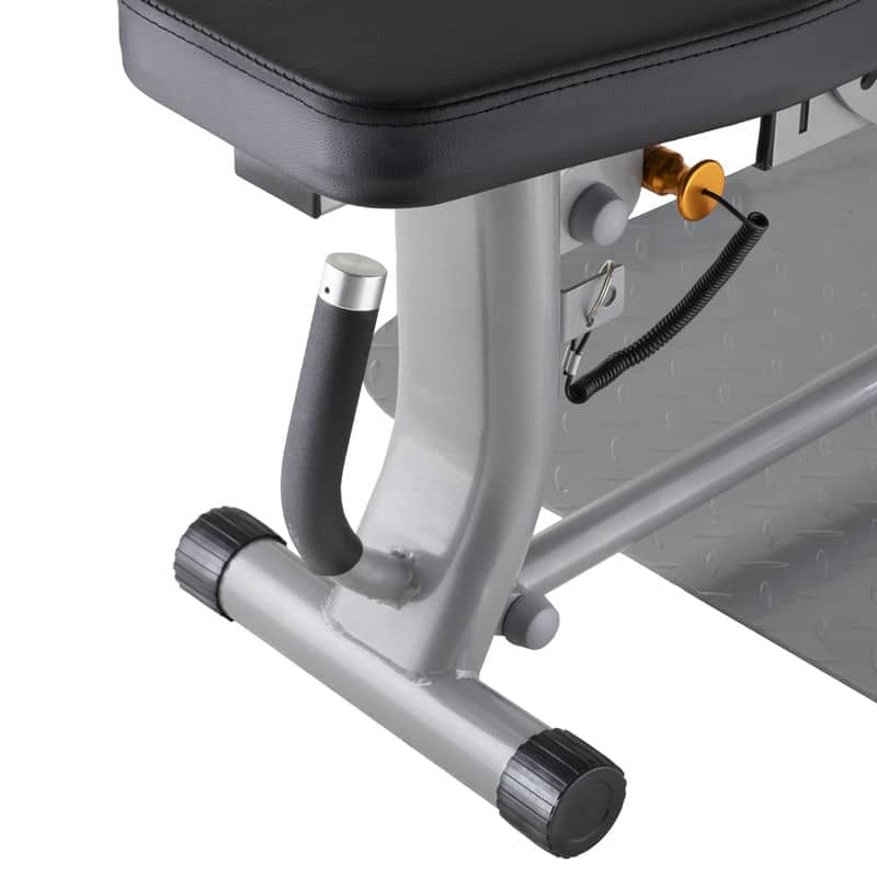 Платформа проти ковзання забезпечує чудову підтримку під час вправ з регульованою лавкою. У цьому положенні ви можете використовувати не тільки шківи, але і підборіддя, що пропонує два різні ручки (кінці ручки оббиті). Усі станції підключені до вантажної системи вагою 90 кг.