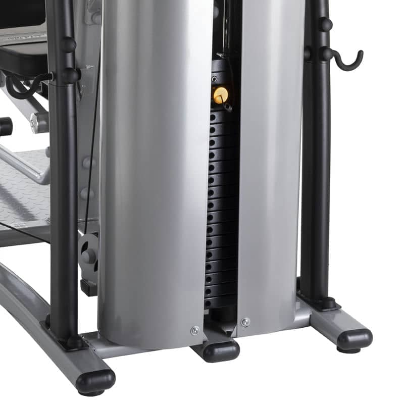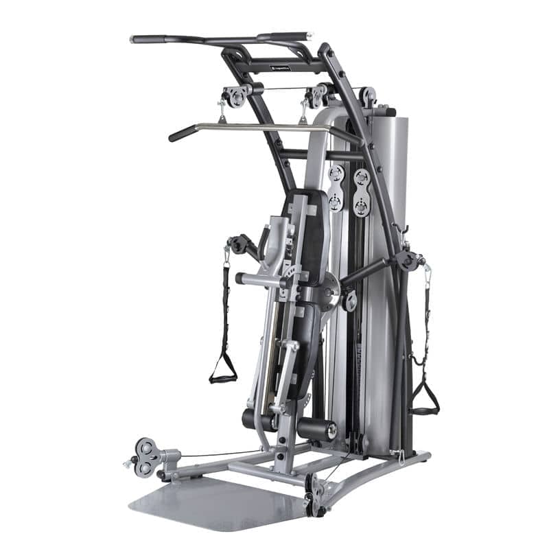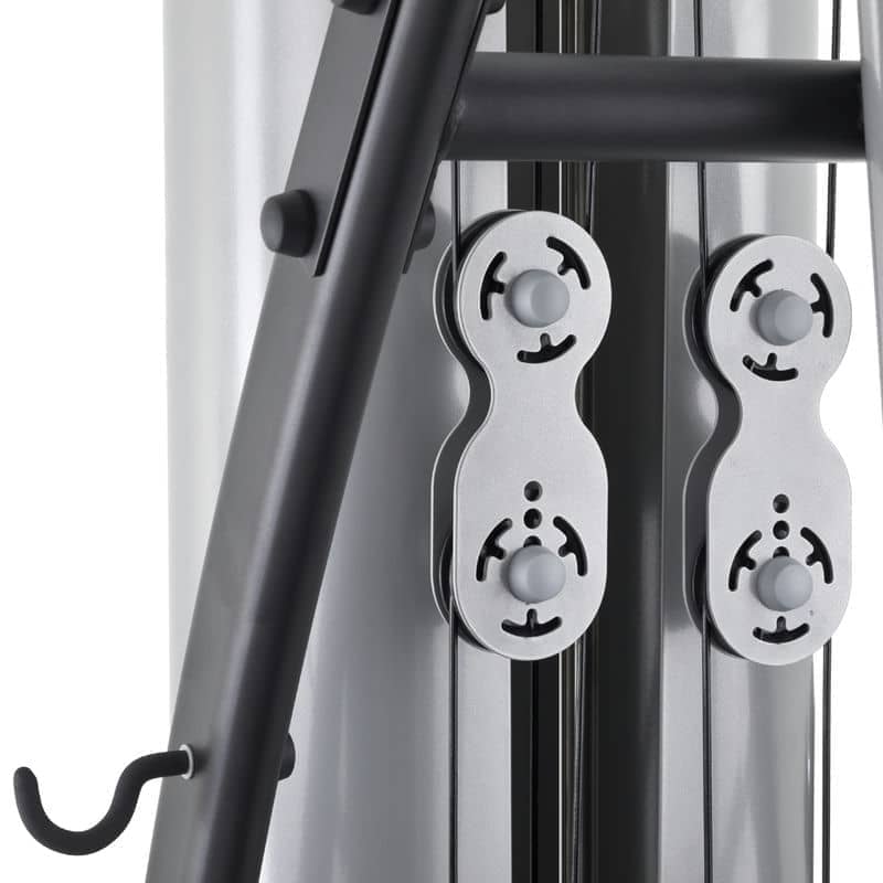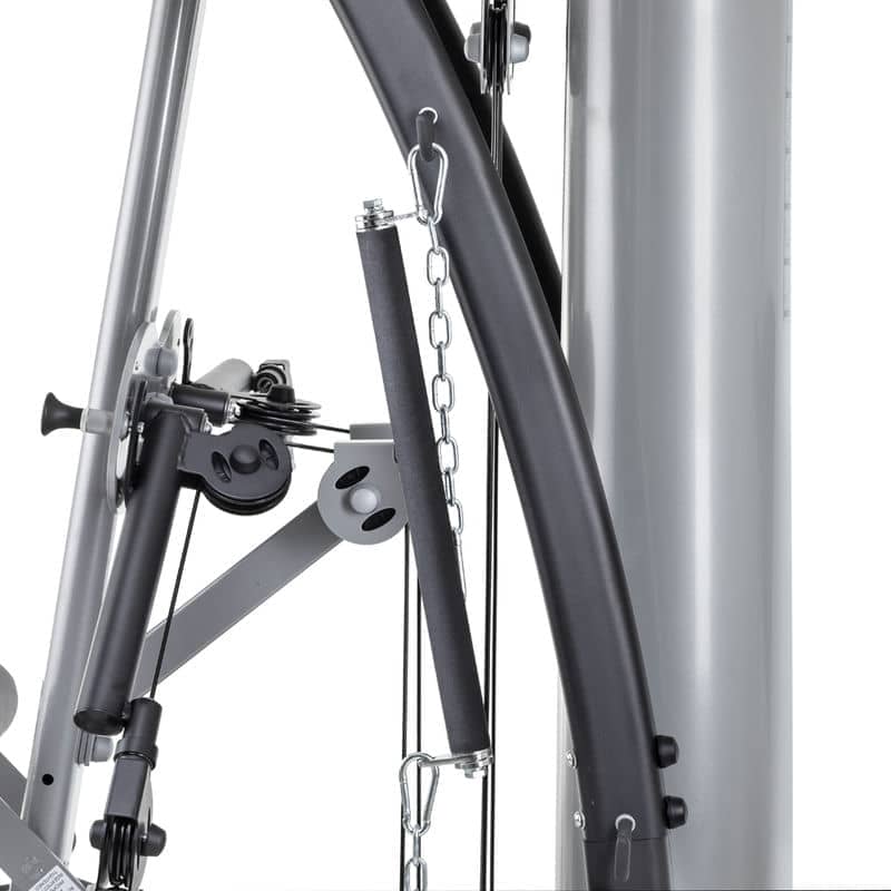 Вправи для вправ можна регулювати в 7 різних положень, що дозволяє зосередитися на різних групах м’язів. Рама також має 5 гачків, на які можна повісити невикористані аксесуари. Потім є верхній поручень із дворучною ручкою та двома одноважільними розширювачами. Регульовані підніжки для ніг (6 різних положень) забезпечують правильне положення при виконанні вправ сидячи.