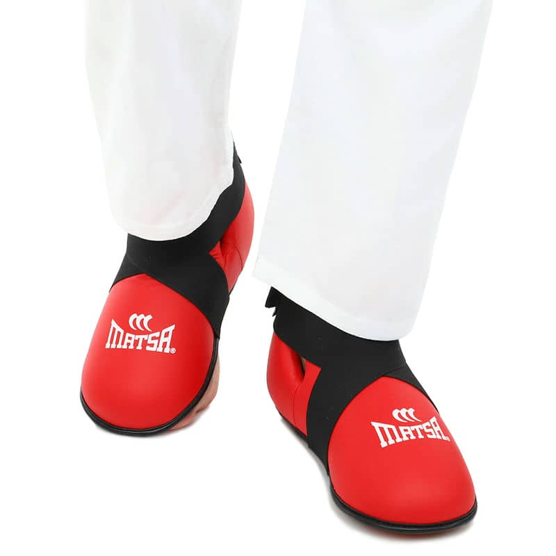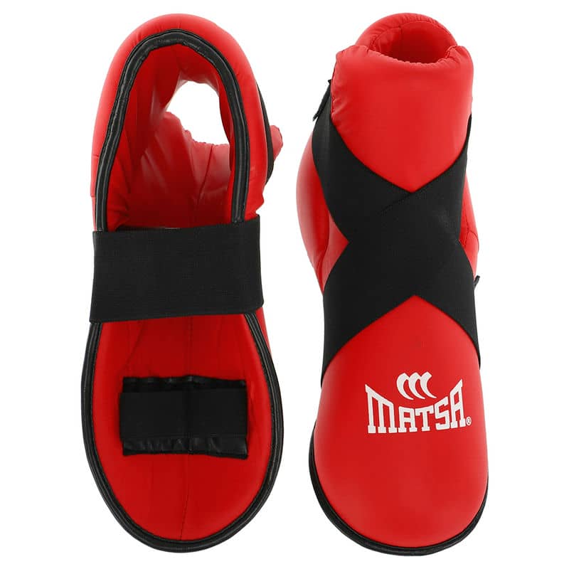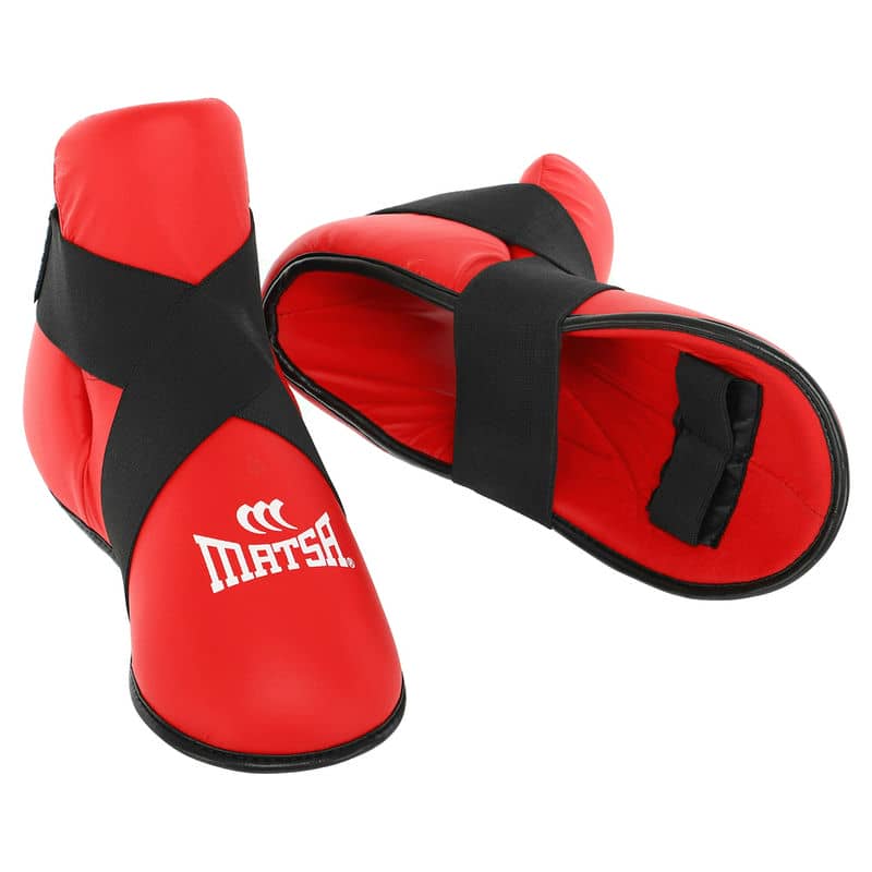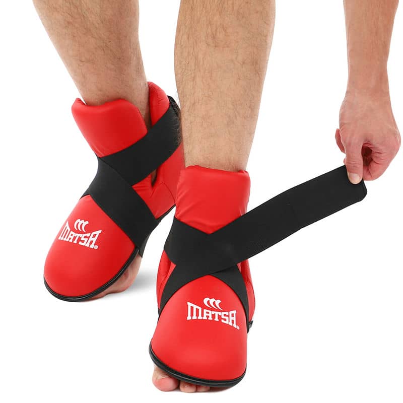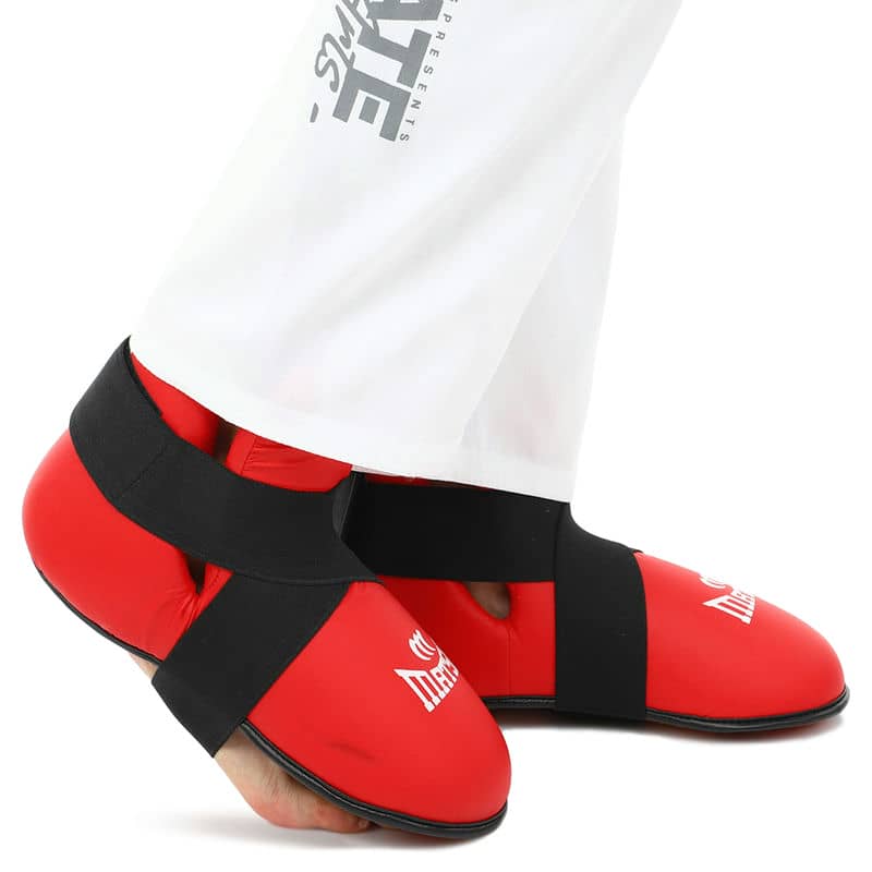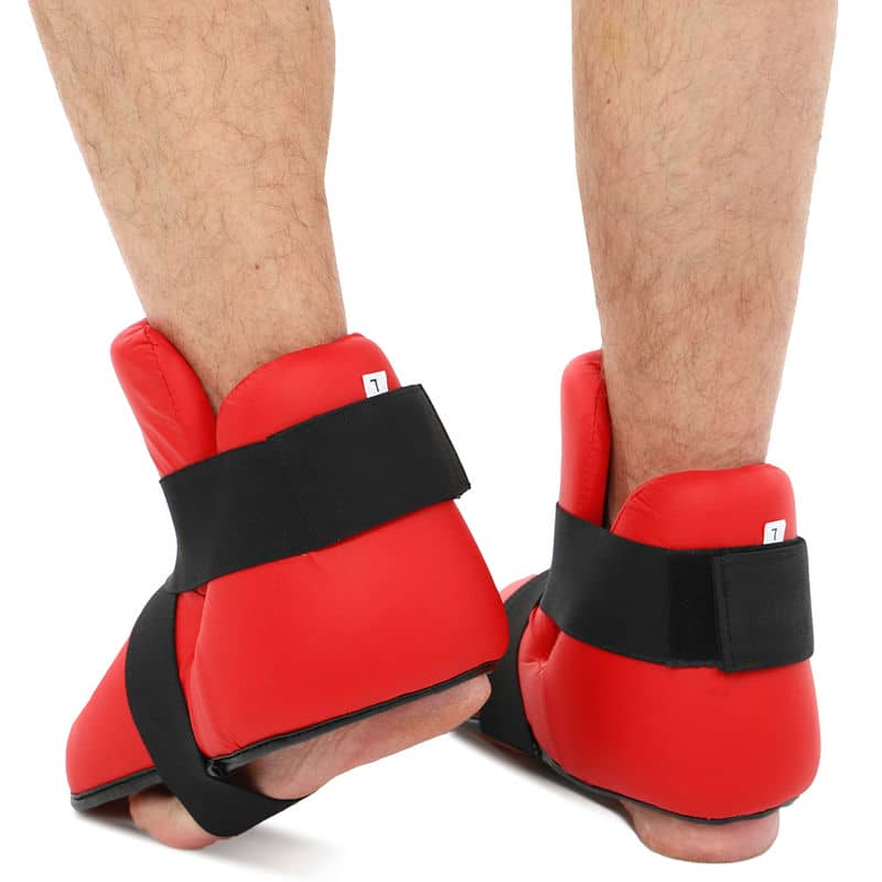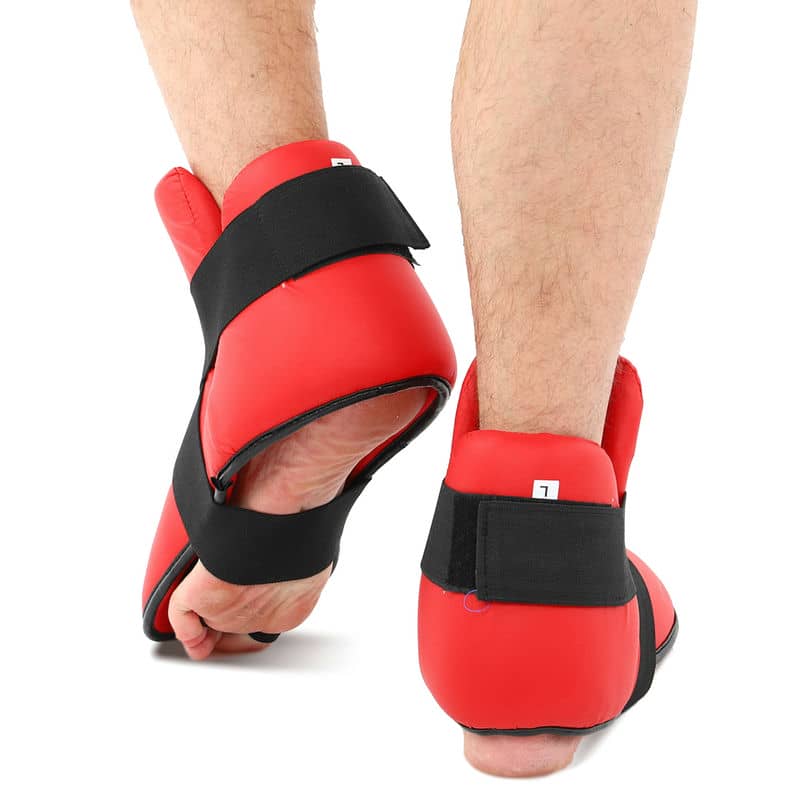 Цей захисний елемент екіпірування зроблений із міцного, стійкого до зношування та деформацій поліуретану (PU). Набивання виготовлене з пінополіуретану високої щільності, який розсіює та поглинає енергію удару, тим самим оберігаючи ногу бійця від пошкоджень. Кріплення є широкою еластичною стрічкою із застібкою на липучці, яка за рахунок своєї пружності щільно охоплює щиколотку і не дає футу зміщуватися. Додаткову фіксацію забезпечують еластичні ремінці для пальців.