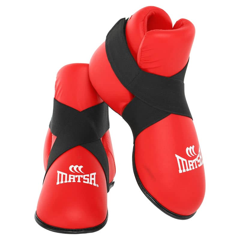 Цей захисний елемент екіпірування зроблений із міцного, стійкого до зношування та деформацій поліуретану (PU). Набивання виготовлене з пінополіуретану високої щільності, який розсіює та поглинає енергію удару, тим самим оберігаючи ногу бійця від пошкоджень. Кріплення є широкою еластичною стрічкою із застібкою на липучці, яка за рахунок своєї пружності щільно охоплює щиколотку і не дає футу зміщуватися. Додаткову фіксацію забезпечують еластичні ремінці для пальців.