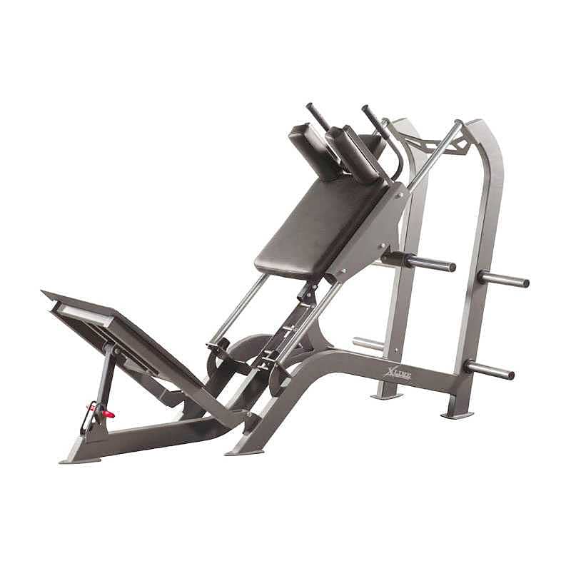 Гак-машина призначена для тренування м'язів ніг вправа "присідання в тренажері".