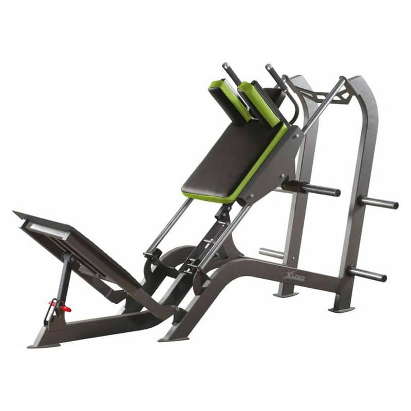 Гак-машина призначена для тренування м'язів ніг вправа "присідання в тренажері".