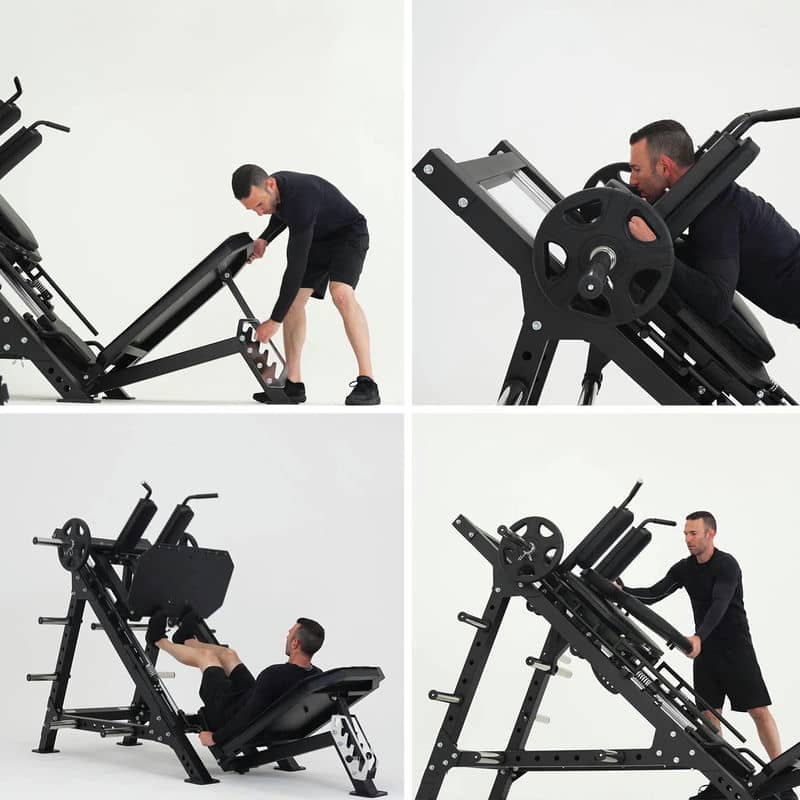 Гак-машина HMS - це обладнання для тренування ніг, яке забезпечить вам силу, витривалість і безпеку. LP3175 має міцну та надійну конструкцію, здатну витримувати навіть найсильніші навантаження. Виберіть із двох можливих конфігурацій тренажера, які дозволяють виконувати присідання та жим ногами.