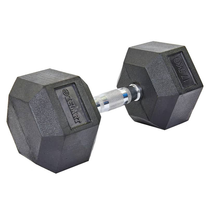 Шестигранні гантелі потрібні не тільки для тренування мускулатури рук - грамотний комплекс вправ дозволить вам опрацювати всі основні м'язи тіла, включаючи ноги. Снаряд підходить чоловікам і жінкам, новачкам і професіоналам, головне - підібрати правильну вагу. А ще з ними легко тренуватися навіть в маленькій кімнаті, оскільки вони не вимагають такого широкого діапазону рухів, як, наприклад, гирі. Цілісна конструкція ідеально підходить для занять фітнесом, де вправи виконуються у високому темпі. Великі ваги знадобляться бодібілдерам. Оптимальна форма не дає снаряду відкочуватися, а також дозволяє поставити торцем на стегно при підготовці до вправи жим на горизонтальній лаві. Знаменита якість Zelart не потребує реклами - снаряди будуть служити вам вірою і правдою довгі роки! У гексагональних гантелей на кінцях грифа для хвата розташовані дві шестикутні призми. Сама ручка для хвата виконана з хромованої сталі, тому відмінно протистоїть корозії металу. Для кращого зчеплення на неї нанесені насічки, вони не дають снаряду вислизати або провертатися. Гума, яка покриває призми, допомагає зменшити шум від снаряда, якщо його неакуратно покласти або упустити, а також захищає підлогове покриття приміщення. З гантелями Zelart можна робити практично всi базові вправи. Хочете накачати ноги - робіть випади і присідання. Для рук будуть корисні різні підйоми сидячи і стоячи, жими через голову. Розвинути плечі допоможе розводка гантелей в сторони, а груди - розводка гантелей лежачи або жим лежачи. М'язам спини будуть корисні шраги та тяга гантелей в нахилі.