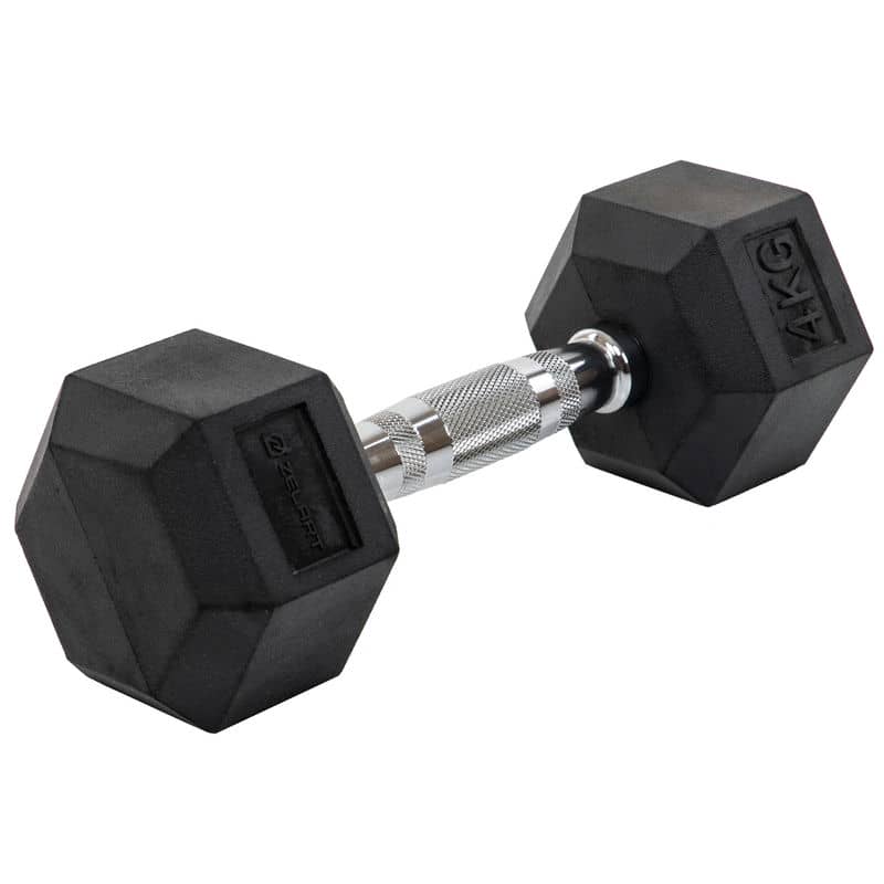 Шестигранні гантелі потрібні не тільки для тренування мускулатури рук - грамотний комплекс вправ дозволить вам опрацювати всі основні м'язи тіла, включаючи ноги. Снаряд підходить чоловікам і жінкам, новачкам і професіоналам, головне - підібрати правильну вагу. А ще з ними легко тренуватися навіть в маленькій кімнаті, оскільки вони не вимагають такого широкого діапазону рухів, як, наприклад, гирі. Цілісна конструкція ідеально підходить для занять фітнесом, де вправи виконуються у високому темпі. Великі ваги знадобляться бодібілдерам. Оптимальна форма не дає снаряду відкочуватися, а також дозволяє поставити торцем на стегно при підготовці до вправи жим на горизонтальній лаві. Знаменита якість Zelart не потребує реклами - снаряди будуть служити вам вірою і правдою довгі роки! У гексагональних гантелей на кінцях грифа для хвата розташовані дві шестикутні призми. Сама ручка для хвата виконана з хромованої сталі, тому відмінно протистоїть корозії металу. Для кращого зчеплення на неї нанесені насічки, вони не дають снаряду вислизати або провертатися. Гума, яка покриває призми, допомагає зменшити шум від снаряда, якщо його неакуратно покласти або упустити, а також захищає підлогове покриття приміщення. З гантелями Zelart можна робити практично всi базові вправи. Хочете накачати ноги - робіть випади і присідання. Для рук будуть корисні різні підйоми сидячи і стоячи, жими через голову. Розвинути плечі допоможе розводка гантелей в сторони, а груди - розводка гантелей лежачи або жим лежачи. М'язам спини будуть корисні шраги та тяга гантелей в нахилі.