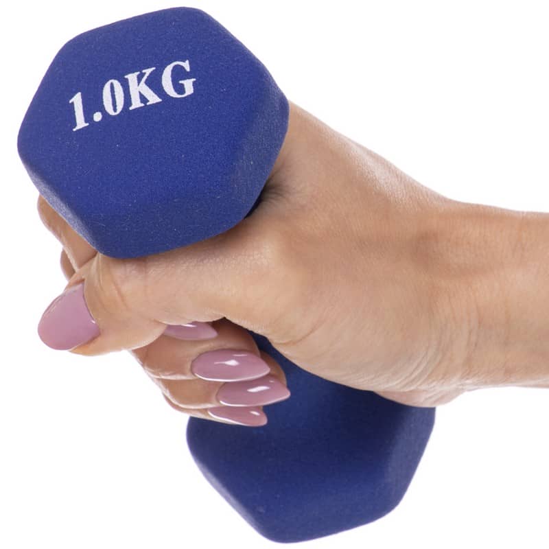 Гантелі для фітнесу FitGo Веселка з неопреновим покриттям 1x1 кг синій, код: TA-0001-1_BL-S52