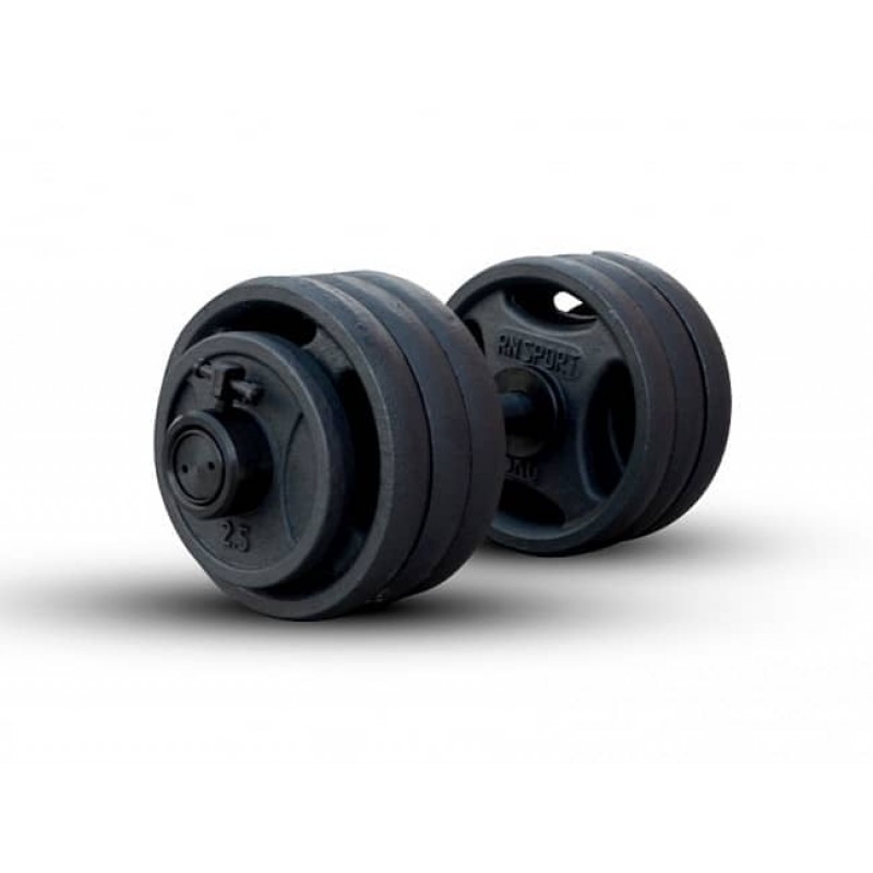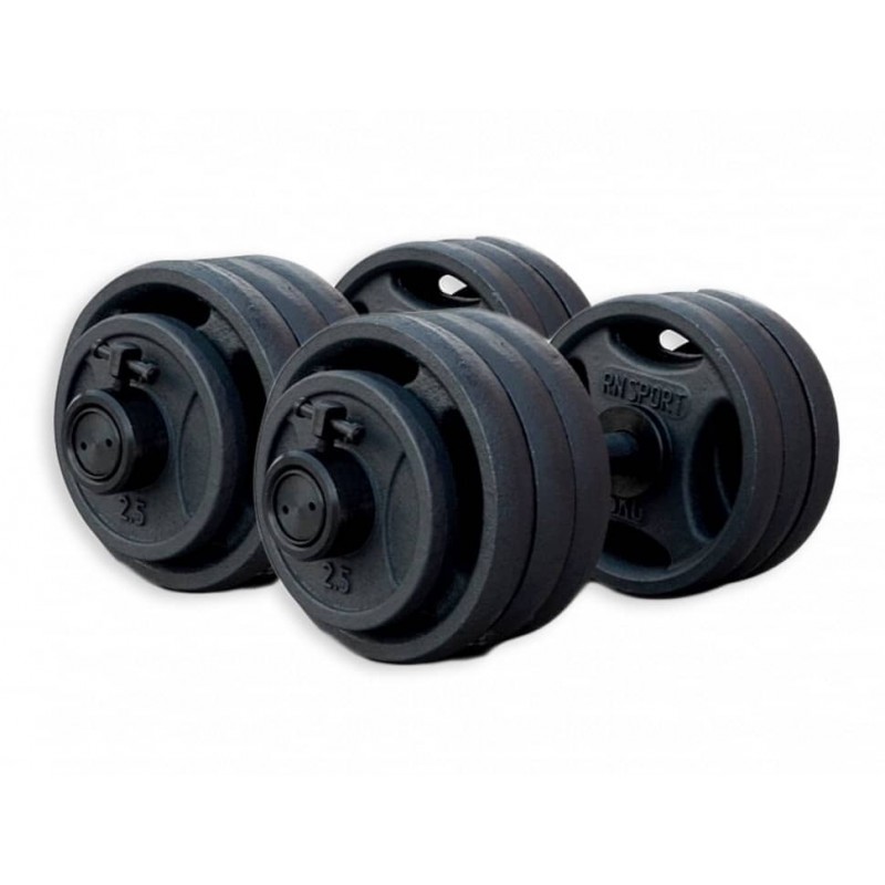 - Шляхом наявності дисків 2.5 і 5 кг, Ви з легкістю зможете комплектувати гантелі більшої ваги, докупивши диски на сайті RN-Sport