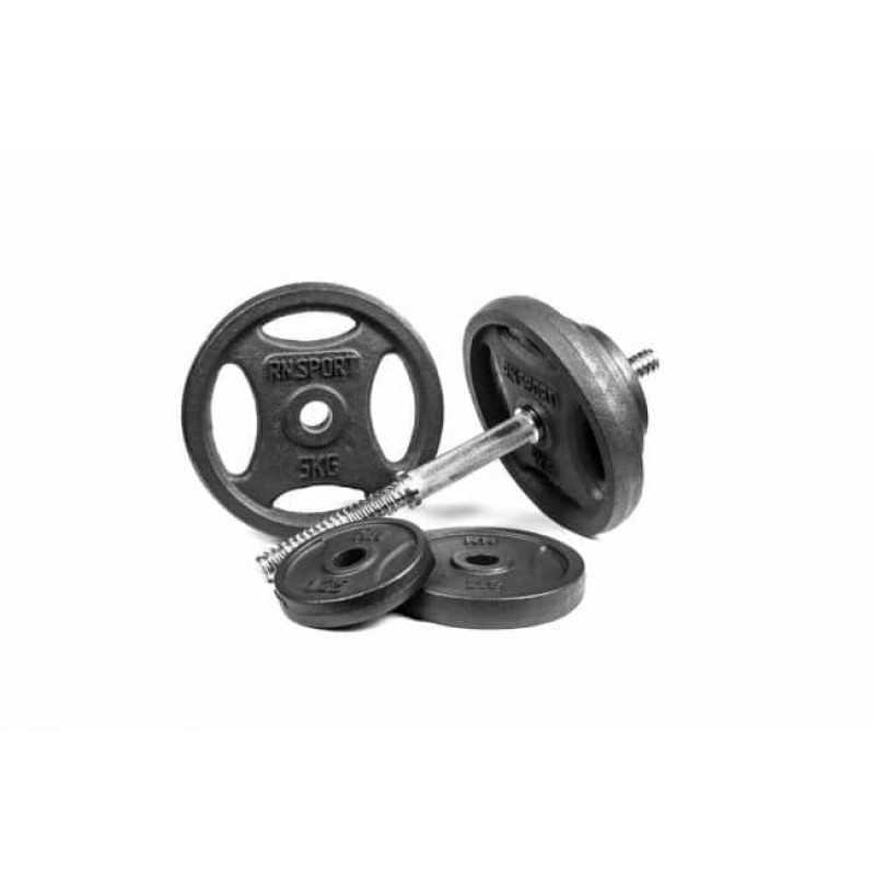 - Шляхом наявності дисків 1,25, 2.5 і 5 кг, Ви з легкістю зможете комплектувати гантелі більшої ваги, докупивши диски на сайті RN-Sport