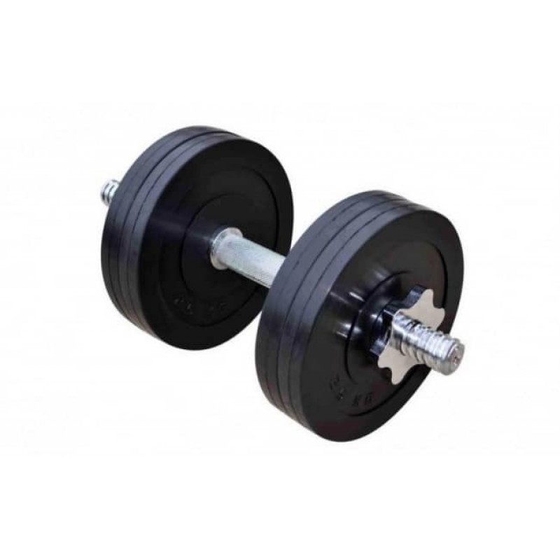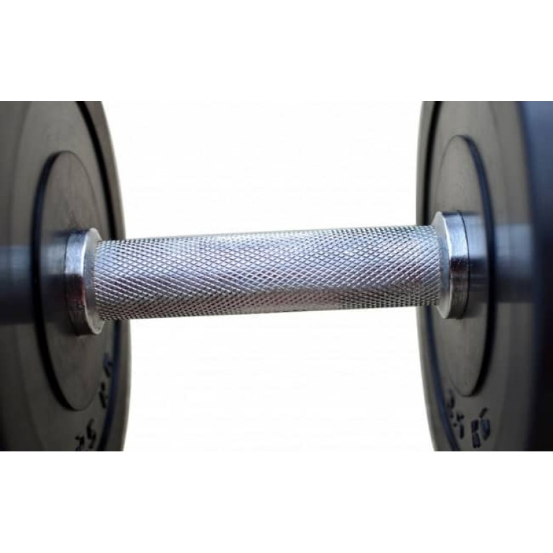 Гриф, як і затискні гайки, повністю виконані зі сталі та покриті шаром хрому. Насічка на рукояті грифа перешкоджає ковзанню рук і чудово сидить у руці. Такі гантелі довгий час будуть радувати вас своїм виглядом та якістю!