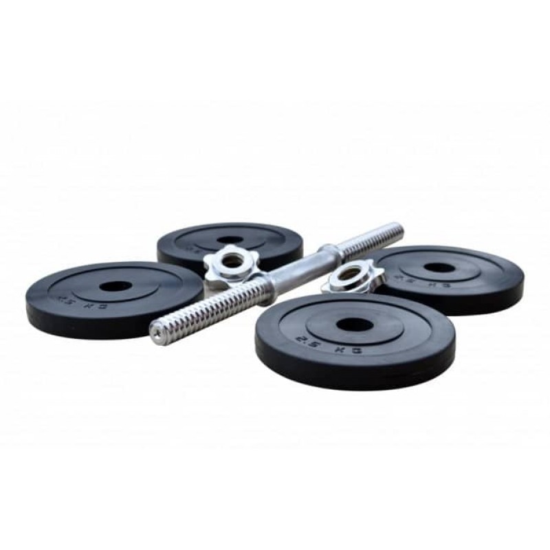 - Комплектація: 8 дисків по 2.5 кг, 2 грифи 35 см, 4 затискні гайки