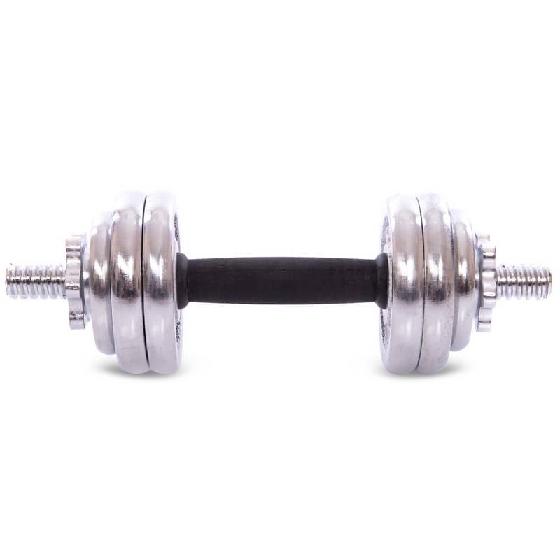 Компактного набору загальною вагою 15 кг буде достатньо для домашніх тренувань всього тіла. Можна виконувати вправи на руки, спину, груди, плечі та навіть ноги. Набір універсальний, він підійде як чоловікам, так і жінкам. Вагу обтяження можна регулювати з мінімальним кроком 0,5 кг. Також у наборі є диски по 1,25 кг. Це гарантує можливість точного регулювання ваги обтяження.