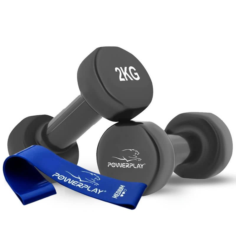 Це просте обладнання, яке можна використовувати як вдома, так і в тренажерному залі. Завдяки гантелям PowerPlay ви зміцните і сформуєте м'язи рук, передпліч та грудей. Вінілові гантелі підходять для аеробних, силових і витривалих тренувань. Також їх часто використовують у реабілітаційних клініках.