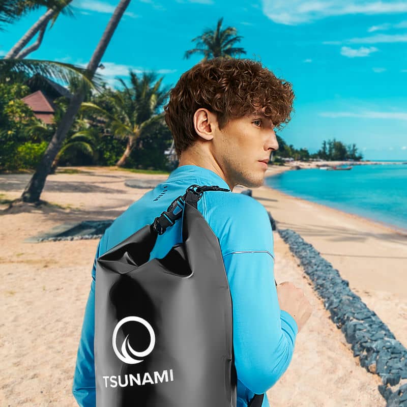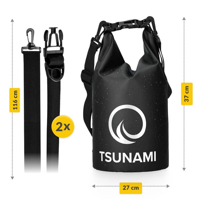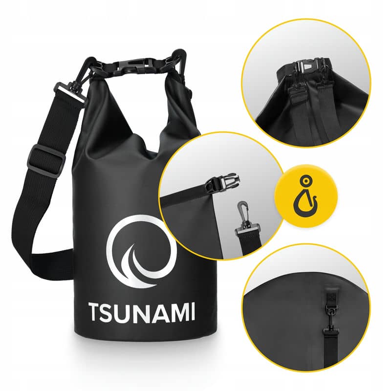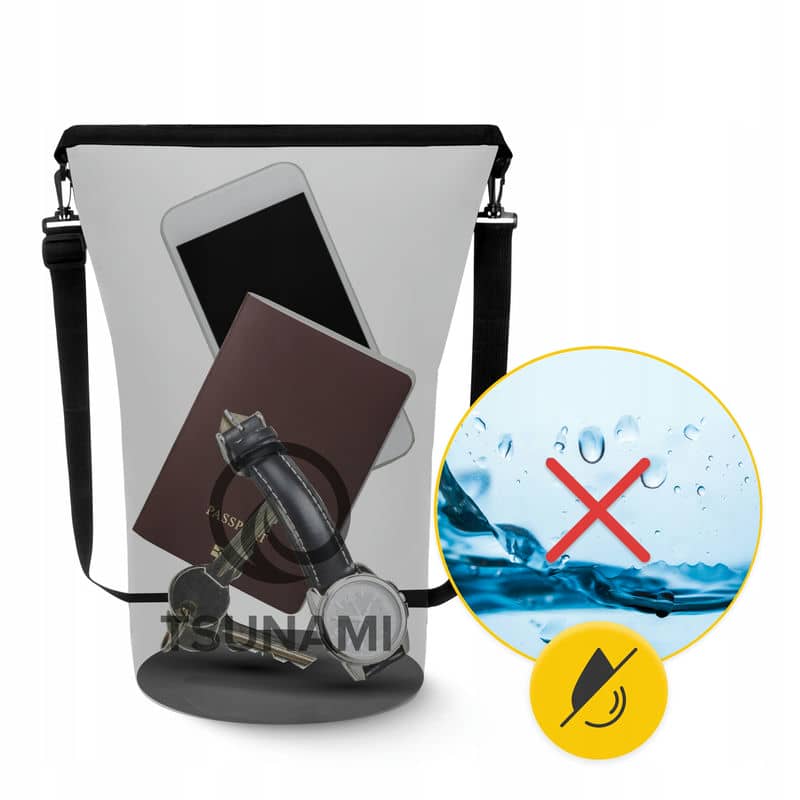Водонепроникний мішок від польського бренду Tsunami створений спеціально для активних людей. Він дозволяє упакувати всі важливі речі та захистити їх від намокання, УФ променів, бруду та пилу. Це надзвичайно корисна річ для любителів екстремальних видів спорту, під час різних поїздок, відпочинку на пляжі чи проживанні в польових умовах.