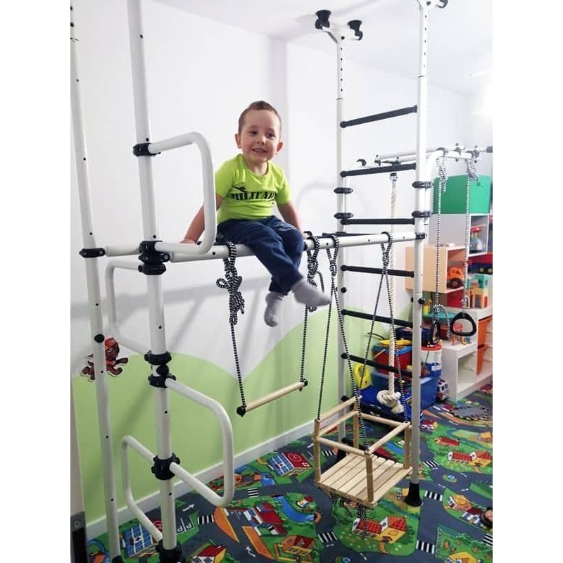 Якщо ви не знаєте, як облаштувати ігрову кімнату - набір Pegas 2 є ідеальним рішенням. З ним ваша дитина отримає цілий ігровий майданчик вдома: вертикальну драбину, горизонтальну драбину, гімнастичну стінку, змійку, гойдалку, обручі, трапецію, канат та баскетбольне кільце. Це чудове рішення як для дитячих кімнат, так і для спортивних залів.