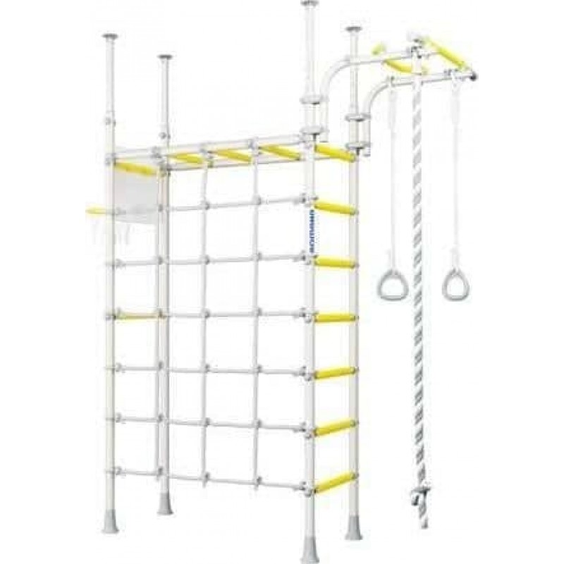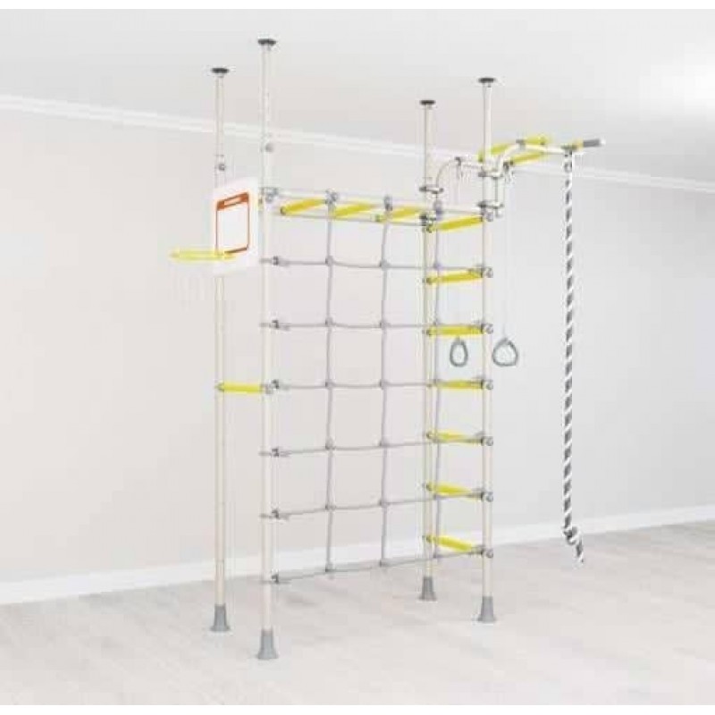 Якщо ви не знаєте, як облаштувати ігрову кімнату - набір Pegas є ідеальним рішенням. Він дарує вашій дитині цілий ігровий майданчик вдома: вертикальну драбину, горизонтальну драбину, гімнастичну перекладину, гойдалки, змійку, канат, колеса та баскетбольне кільце. Це чудове рішення як для дитячих кімнат, так і для спортивних залів.