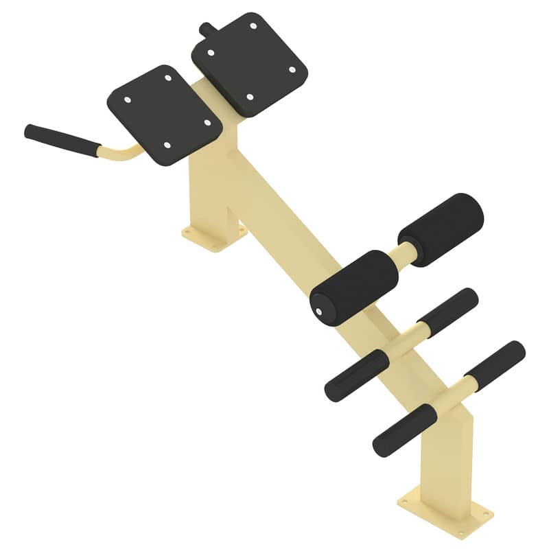 Гіперекстензія приставна стане незамінним спортивним обладнанням під час облаштування багатофункціональної спортивної зони. Встановлювати тренажер можна на відкритих майданчиках, на території шкіл, пансіонатів та санаторіїв, у дворах багатоповерхівок, у парках, пляжах.