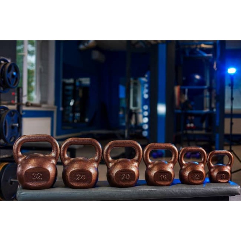 - Лінійка гирь: 8 кг, 12 кг, 16 кг, 20 кг, 24 кг, 32 кг