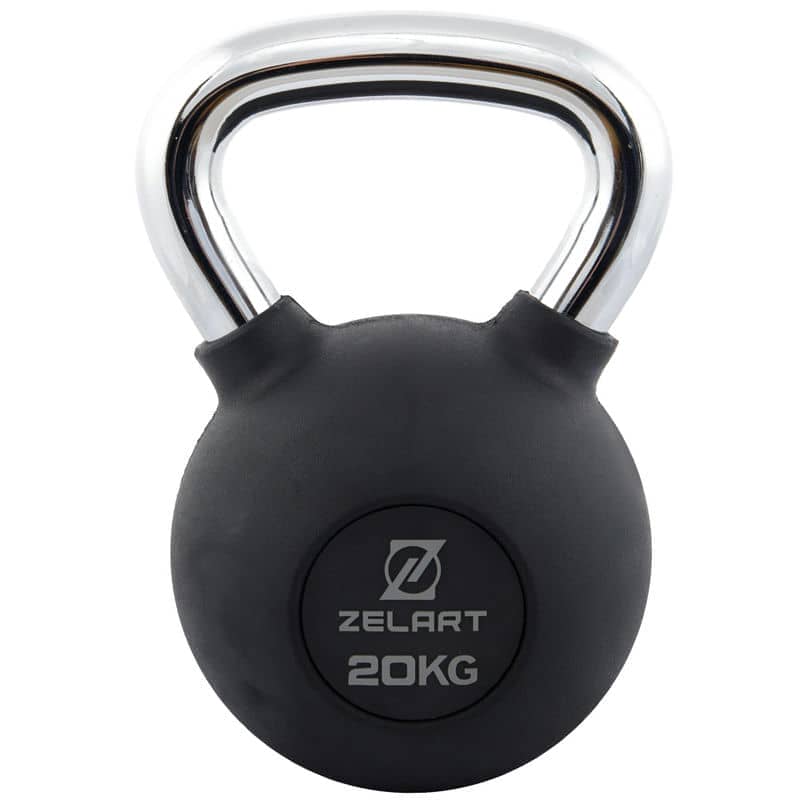 Гиря чавунна з гумовим покриттям та хромованою ручкою Zelart 20кг, чорний, код: TA-7794-20-S52