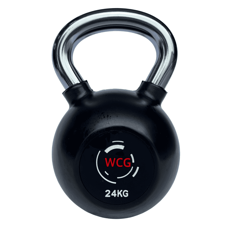 Обгумована гиря з хромованою ручкою WCG 24 кг спеціально розроблена для функціональних тренувань всього тіла, тому дозволить вам одночасно зміцнити серце, розвинути силу та наростити м'язи.