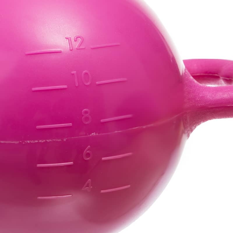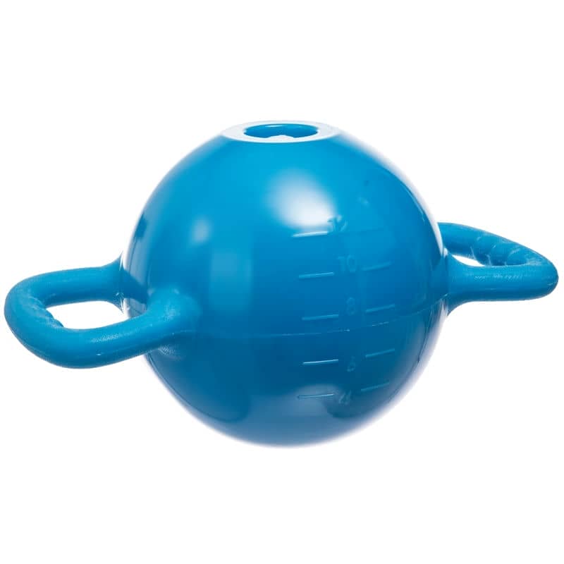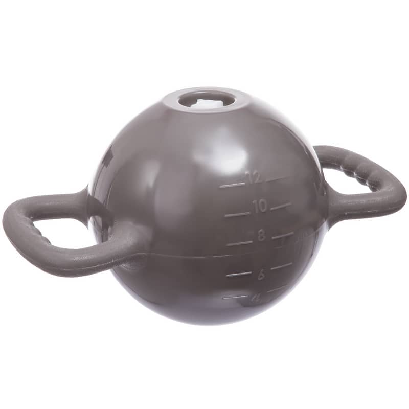 Її конструкція з двома зручними ручками забезпечує надійний хват і комфорт при виконанні різних вправ. Для контролю ваги служить мірна шкала, що відображає рівень заповнення водою, що полегшує вибір оптимального навантаження. Пластикова заглушка гарантує герметичність та запобігає протіканню, при цьому швидко відкручується та закручується для зручності використання.
