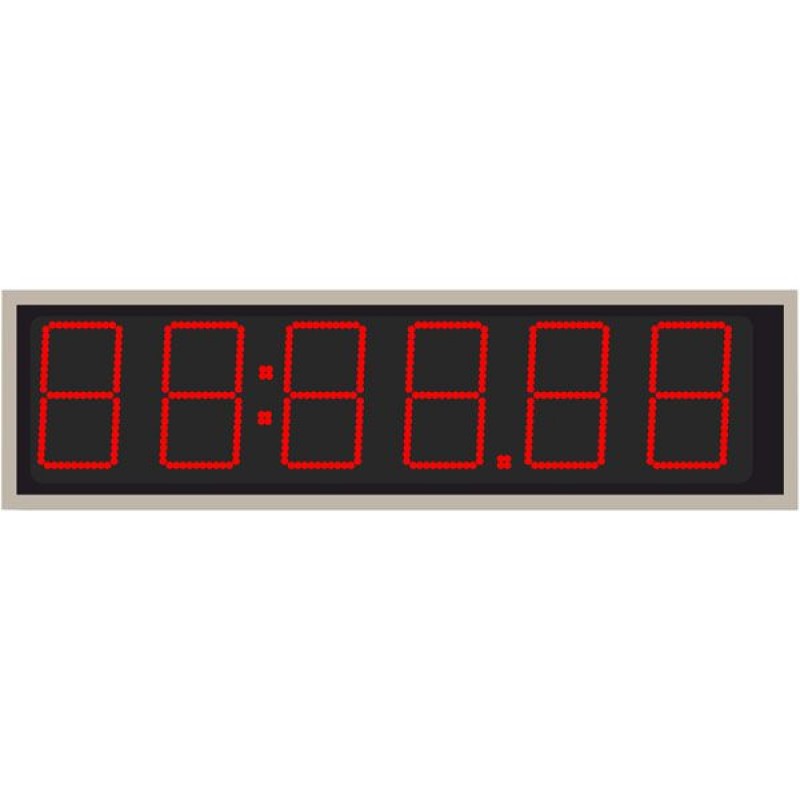 Електронний годинник для настінного кріплення. Підійде тим, для кого точність в хвилину не є достатньою: наради, доповіді на конференціях або початок відповідального заходу. У таких справах потрібно час з точністю до секунд. Яскравість світіння світлодіодів регулюється в широких межах з пульта дистанційного керування. Є можливість підключення модуля супутникової синхронізації, що ставить практичну точність показань часу на максимум. Комплектація: годинник-термометр настінний, шість розрядів; пульт управління інфрачервоний; паспорт та інструкція з експлуатації; захисна упаковка. Висота цифрових символів: 150 мм. Дальність видимості: до 60 м. Елементи індикації: світлодіоди 5 мм. Яскравість світлодіодів (залежить від кольору): 0,7-2,3 Кд. Кількість градацій яскравості: 8. Точність вимірювання температури: не гірше ±1°С. Тривалість ходу годинника без живлення: не менше 15 днів. Матеріал внутрішньої рами: алюміній. Матеріал зовнішнього корпусу: анодований алюміній. Лицьова панель: оргскло із захисною плівкою. Температура експлуатації: від -30 до +55°С. Можливість роботи на вулиці. Напруга живлення: 220 В. Потужність: не більше 45 Вт. Тип кріплення годин: настінне. Дальність роботи пульта: до 8 метрів. Габарити в упаковці: 940х260х75 мм.
