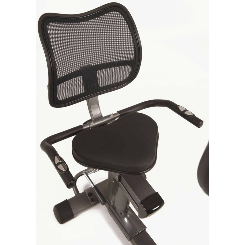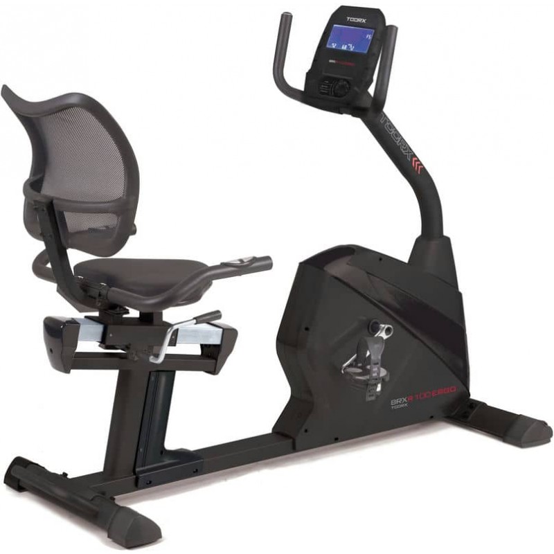 Горизонтальний велоергометр Toorx Recumbent Bike BRXR 100 ERGO (BRX-R100ERGO) із преміальної лінійки Chrono Line від італійського виробника Garlando S.p.A. призначений для комфортного кардіотренування в домашніх умовах. Тренажер має 32 рівня навантаження, що регулюються за допомогою сучасного комп'ютера. 14-кілограмовий маховик створює чудову плавність ходу, знижуючи навантаження на суглоби та мінімізуючи ризик отримання травми в процесі занять. Велоергометр розрахований на вагу користувача до 130 кг і має зручну спинку з дихаючої сітки для більшого комфорту. Вбудований приймач для бездротового датчика вимірювання пульсу буде доречним під час тренування по одній із чотирьох пульсозалежних програм. Консоль тренажера має підставку для смартфона/планшета та підтримує Bluetooth для інтеграції з популярними програмами iConsole+ Training і Kinomap, які перетворять монотонне тренування в захоплюючий процес. Сидіння велоергометра регулюється в горизонтальній площині для індивідуального настроювання, а транспортувальні ролики в передній частині тренажера дозволяють переміщати його по кімнаті.