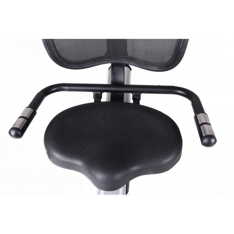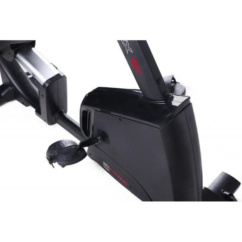 Горизонтальний велоергометр Toorx Recumbent Bike BRXR 300 ERGO (BRX-R300ERGO) із преміальної лінійки Chrono Line від італійського виробника Garlando S.p.A. призначений для комфортного кардіотренування в домашніх умовах. Тренажер має 32 рівня навантаження, що регулюються за допомогою сучасного комп'ютера. 16-кілограмовий маховик створює чудову плавність ходу, знижуючи навантаження на суглоби та мінімізуючи ризик отримання травми в процесі занять. Велоергометр розрахований на вагу користувача до 150 кг і має зручну спинку з дихаючої сітки для більшого комфорту. Вбудований приймач для бездротового датчика вимірювання пульсу буде доречним під час тренування по одній із чотирьох пульсозалежних програм. Консоль тренажера має підставку для смартфона/планшета та підтримує Bluetooth для інтеграції з популярними програмами iConsole+ Training, Kinomap і Zwift, які перетворять монотонне тренування в захоплюючий процес. Сидіння велоергометра регулюється в горизонтальній площині для індивідуального настроювання, а транспортувальні ролики в передній частині тренажера дозволяють переміщати його по кімнаті.