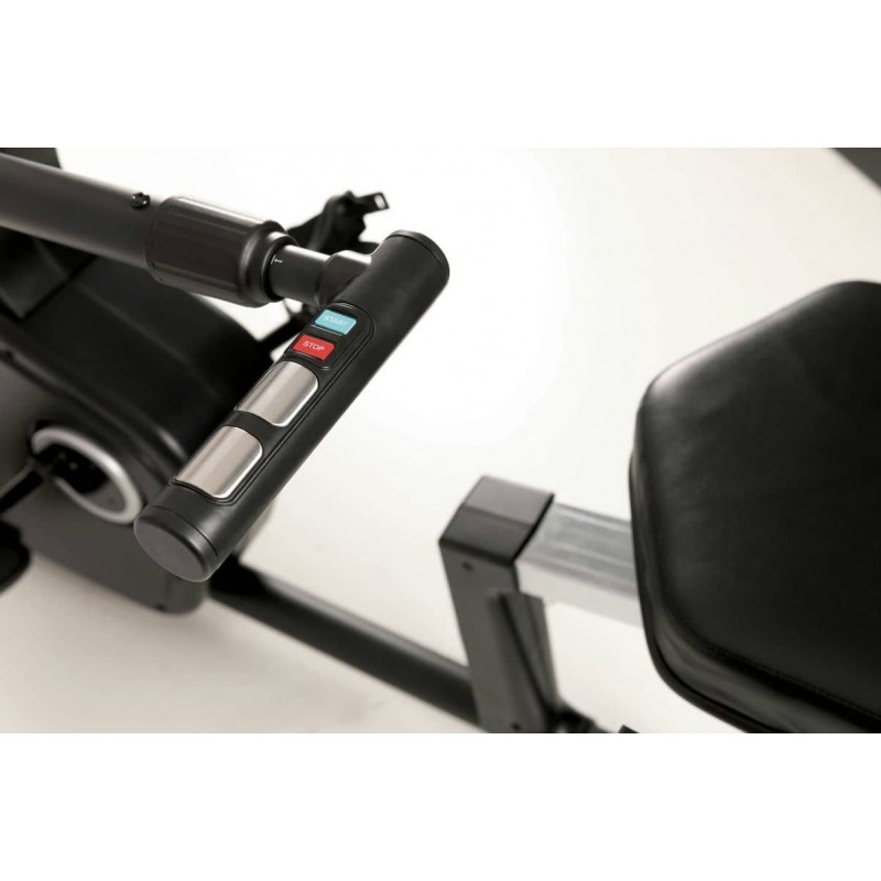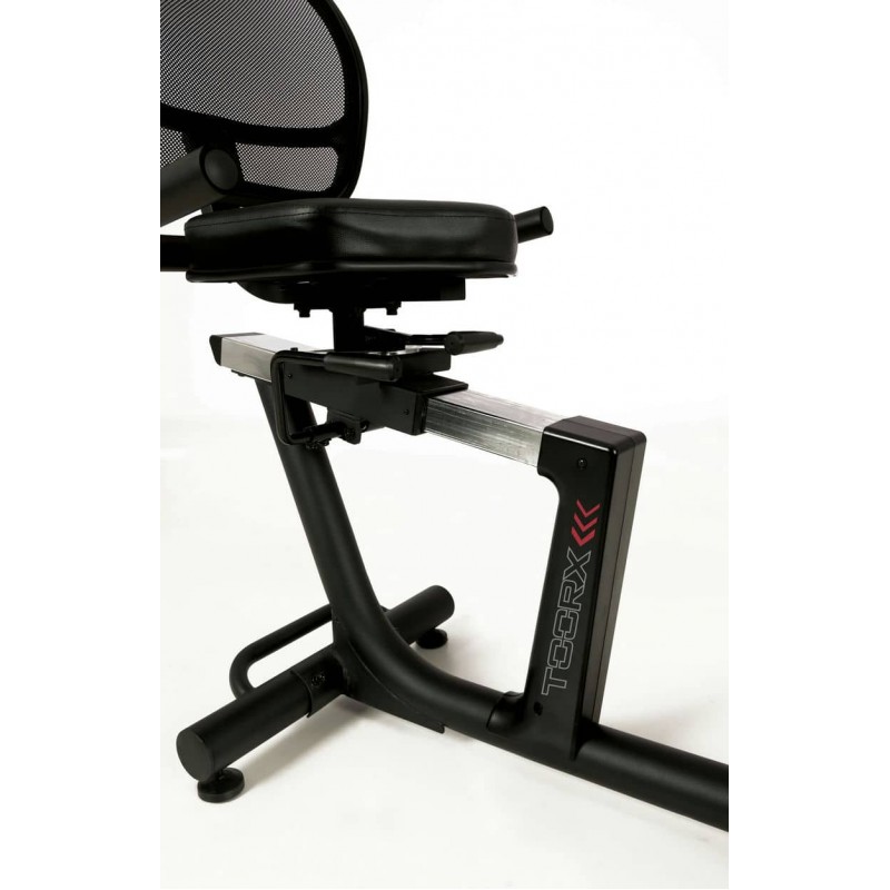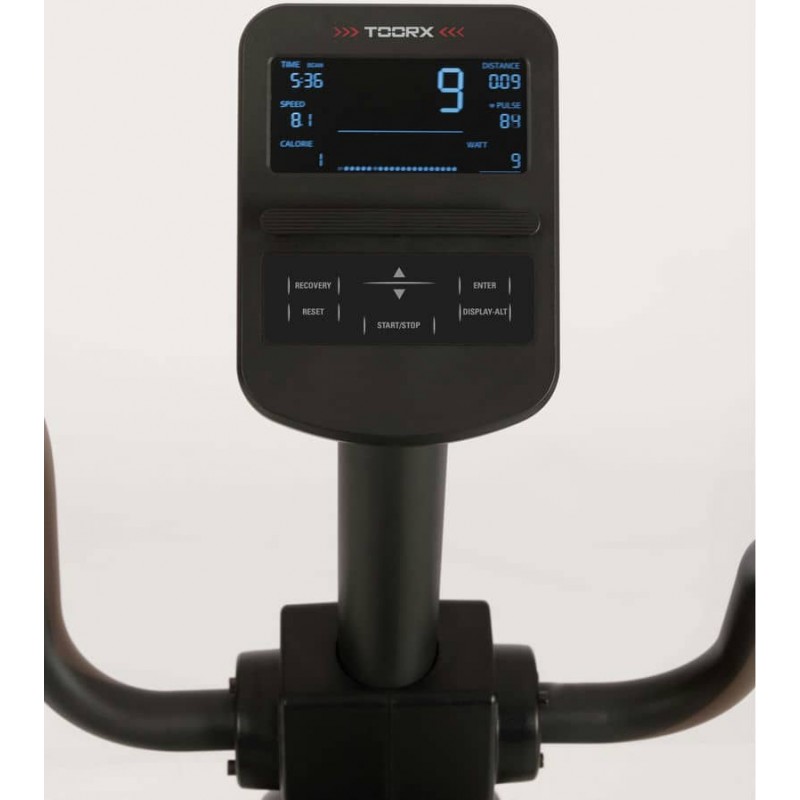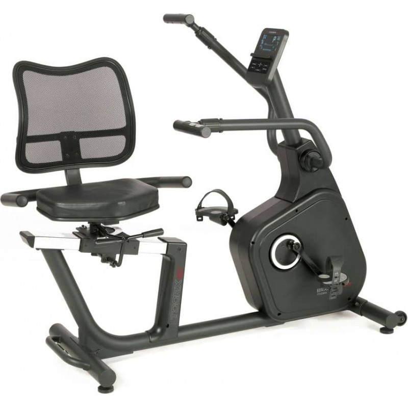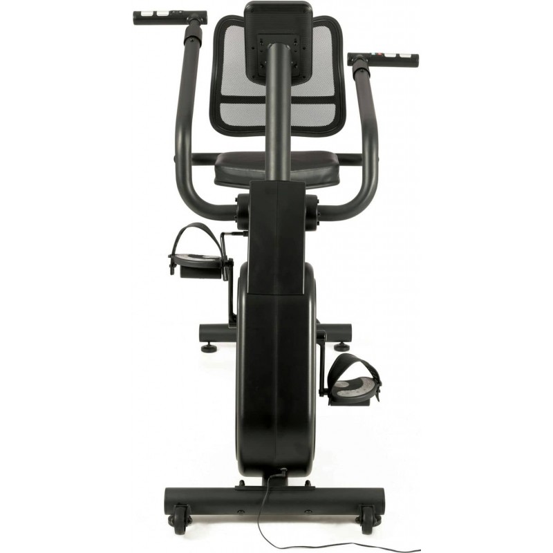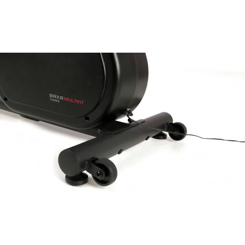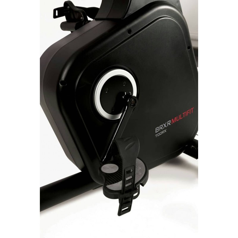 Горизонтальний велотренажер реабілітаційний Toorx Recumbent Bike BRXR Multifit (BRX-RMULTIFIT) із преміальної лінійки Chrono Line від італійського виробника Garlando S.p.A. призначений для комфортного кардіотренування в домашніх умовах. Дана модель не має собі рівних на ринку, оскільки оснащена рухомими важелями, синхронізованими з педалями, а також зручними кнопками для регулювання рівнями навантаження, що гарантують можливість тренування верхніх кінцівок разом із нижніми. Сидіння велотренажера регулюється в горизонтальній площині, а також повертається на 90 градусів праворуч або ліворуч, що забезпечує легкий доступ для людей із обмеженою рухливістю. 14-кілограмовий маховик створює чудову плавність ходу, знижуючи навантаження на суглоби та мінімізуючи ризик отримання травми в процесі занять. Велотренажер розрахований на вагу користувача до 120 кг і має зручну спинку з дихаючої сітки для більшого комфорту. Вбудований приймач для бездротового датчика вимірювання пульсу буде доречним під час тренування по одній із чотирьох пульсозалежних програм. Консоль тренажера має підставку для смартфона/планшета та підтримує Bluetooth для інтеграції з популярними програмами Kinomap і Zwift, які перетворять монотонне тренування в захоплюючий процес. Транспортувальні ролики в передній частині тренажера дозволяють переміщати його по кімнаті.