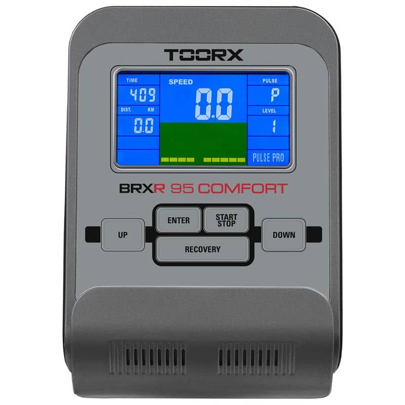 Горизонтальний велотренажер Toorx Recumbent Bike BRXR 95 Comfort (BRX-R95-COMFORT) від італійського виробника Garlando SpA призначений для комфортної кардіотреніровки в домашніх умовах. Тренажер має 24 рівня навантаження, регульованою за допомогою сучасного комп'ютера. 10-кілограмовий маховик створює чудову плавність ходу, знижуючи навантаження на суглоби і мінімізуючи ризик отримання травми в процесі занять. Велотренажер розрахований на вагу до 130 кг і має зручну спинку з дихаючої сітки для більшого комфорту. Вбудований приймач для бездротового датчика вимірювання пульсу буде до речі під час тренування по одній з трьох пульсозависимих програм. Сидіння велотренажера регулюється в горизонтальній площині для індивідуальної настройки, а транспортувальні ролики в передній частині тренажера дозволяють переміщати його по кімнаті за допомогою зручної ручки.